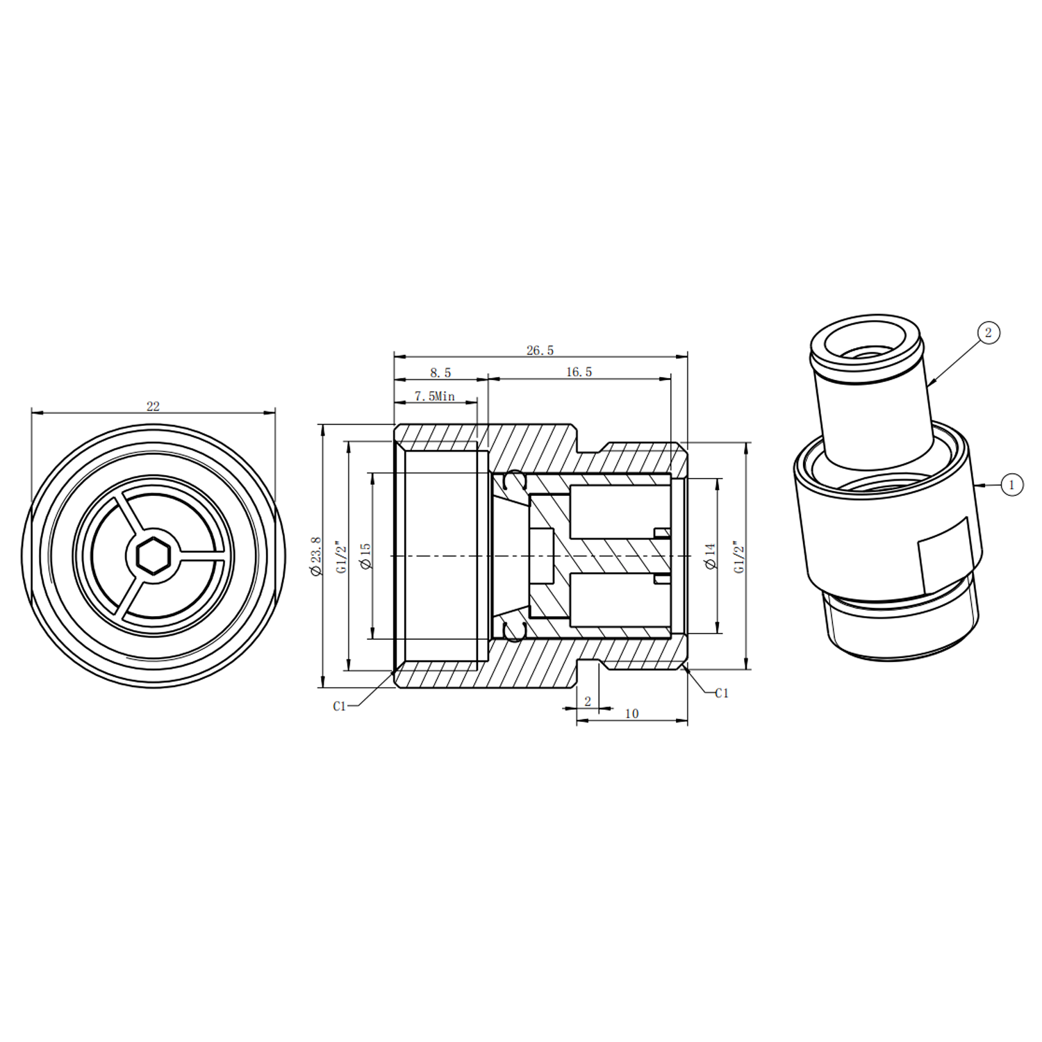 Visszacsapó szelep csaphoz, sárgaréz, 3/4" (ADA11)