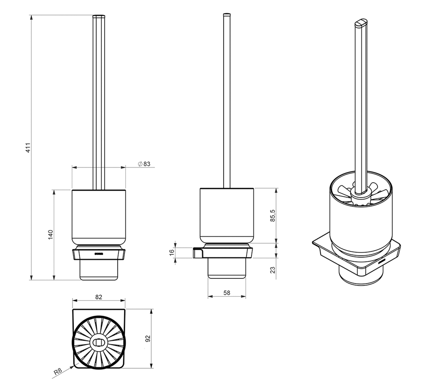 161041 ZEN WC-kefe, króm