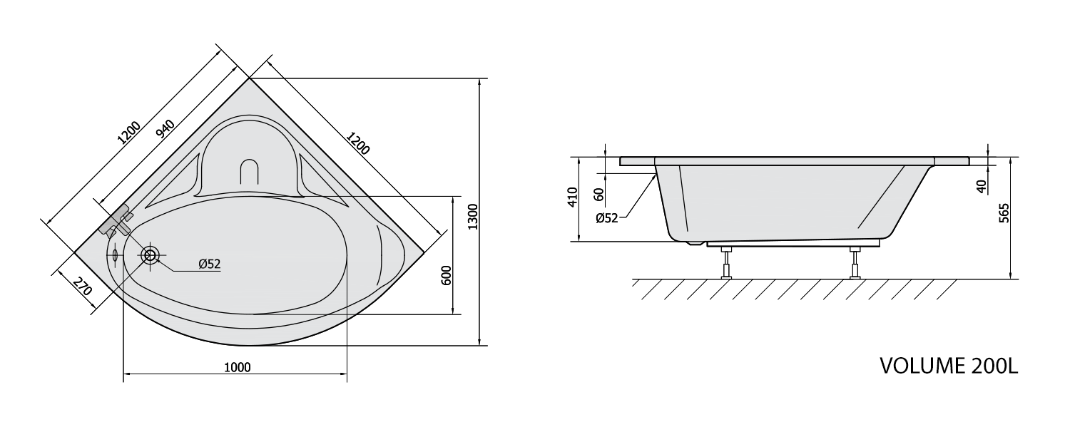 POLYSAN NILA sarokkád, 120x120x41cm (10111)
