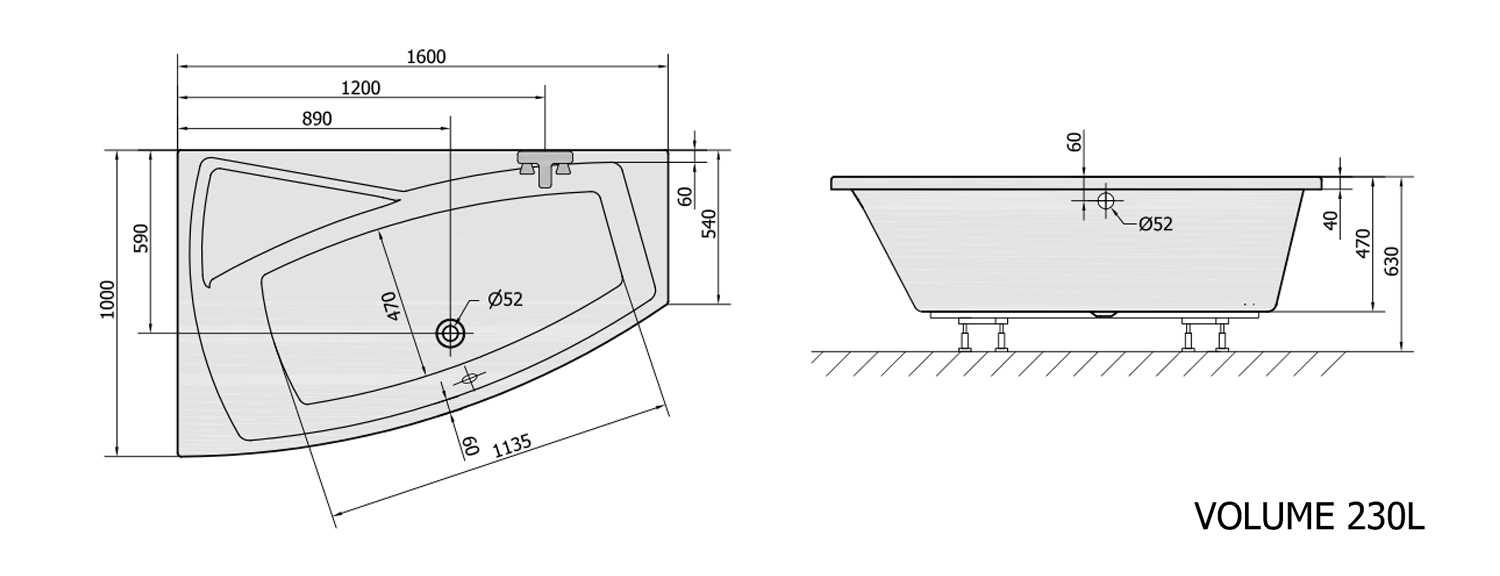 POLYSAN EVIA aszimmetrikus kád, balos, 160x100x47cm (11611)