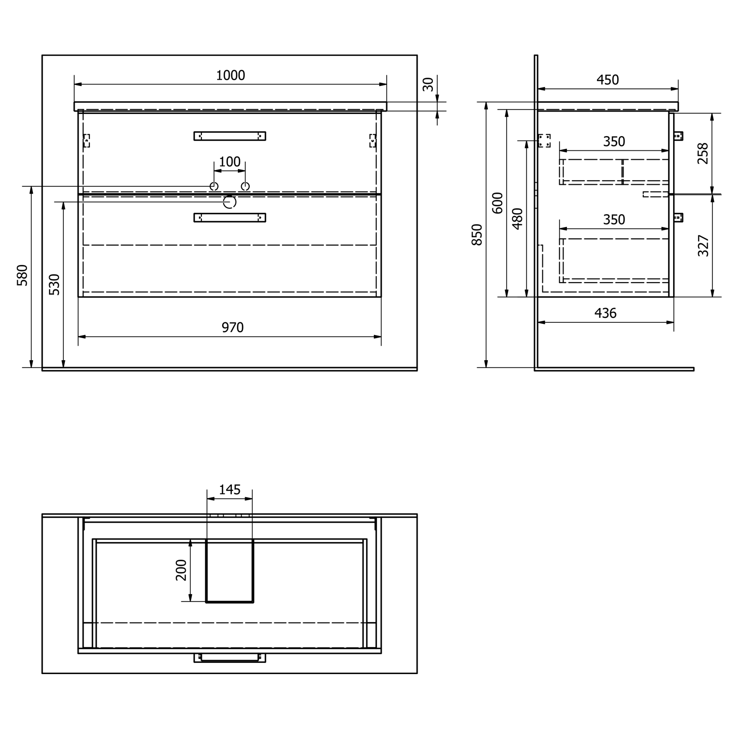 VG103 AQUALINE VEGA mosdótartó szekrény, 2 fiókos, 97x60x43,6cm, fehér