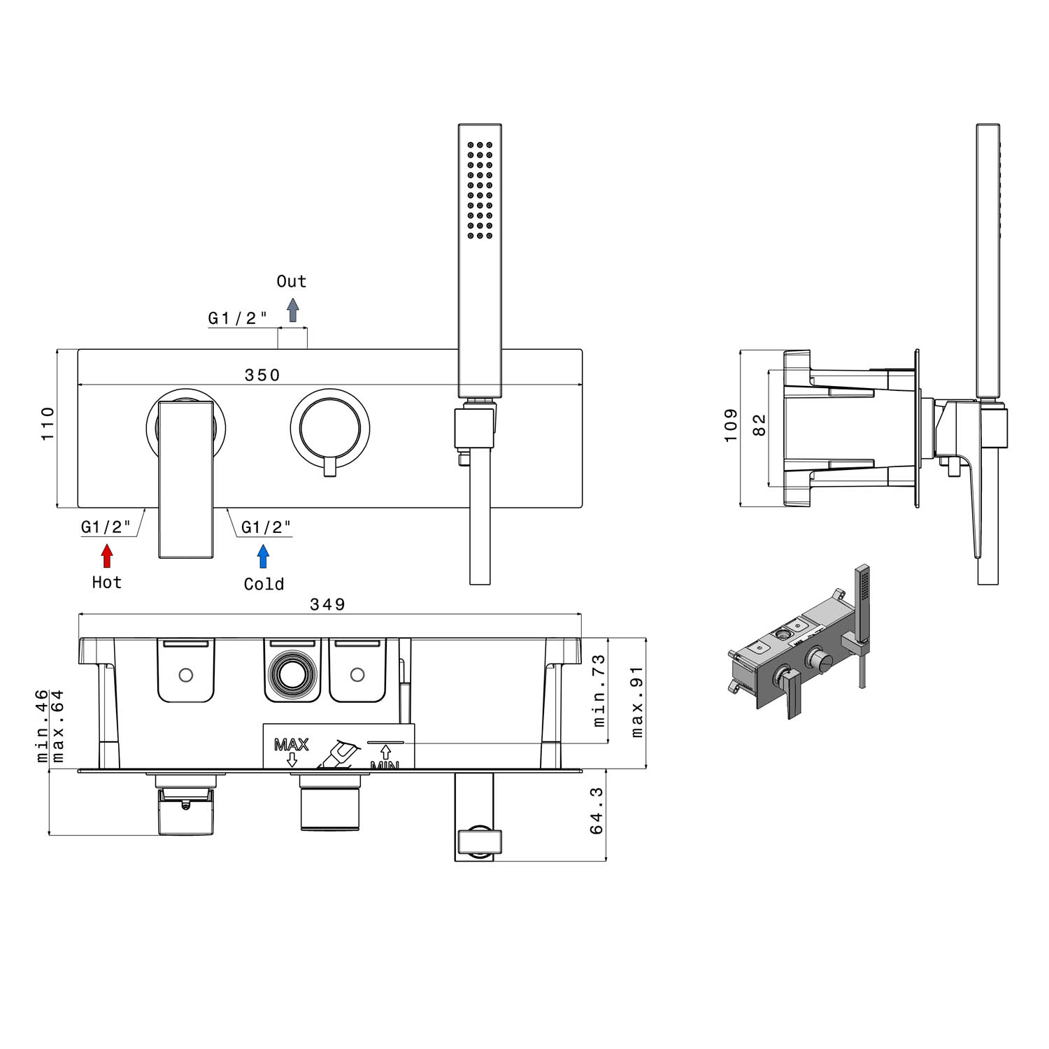 DM245BL DIMY fali termosztátos zuhanycsaptelep, fekete