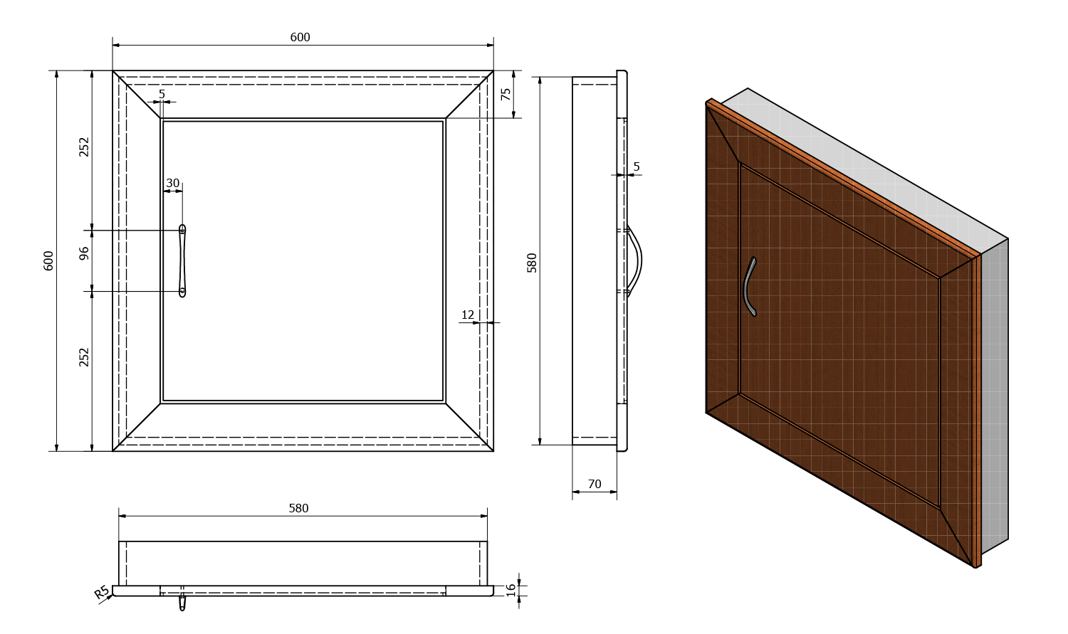 AQUALINE ajtó szerelvények takarásához, balos/jobbos, 60x60x8,6cm (DS125)