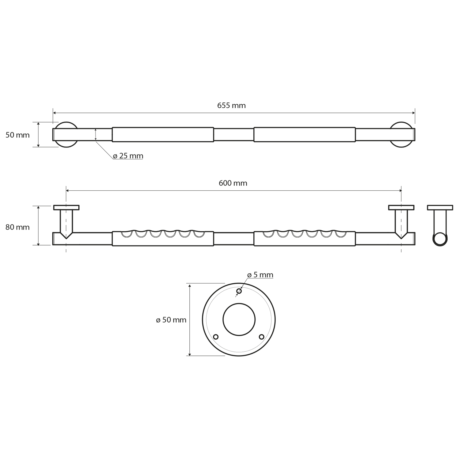 XR506 BEMETA OMEGA Kapaszkodó, gumival, 655x50x80mm, króm (104507681)