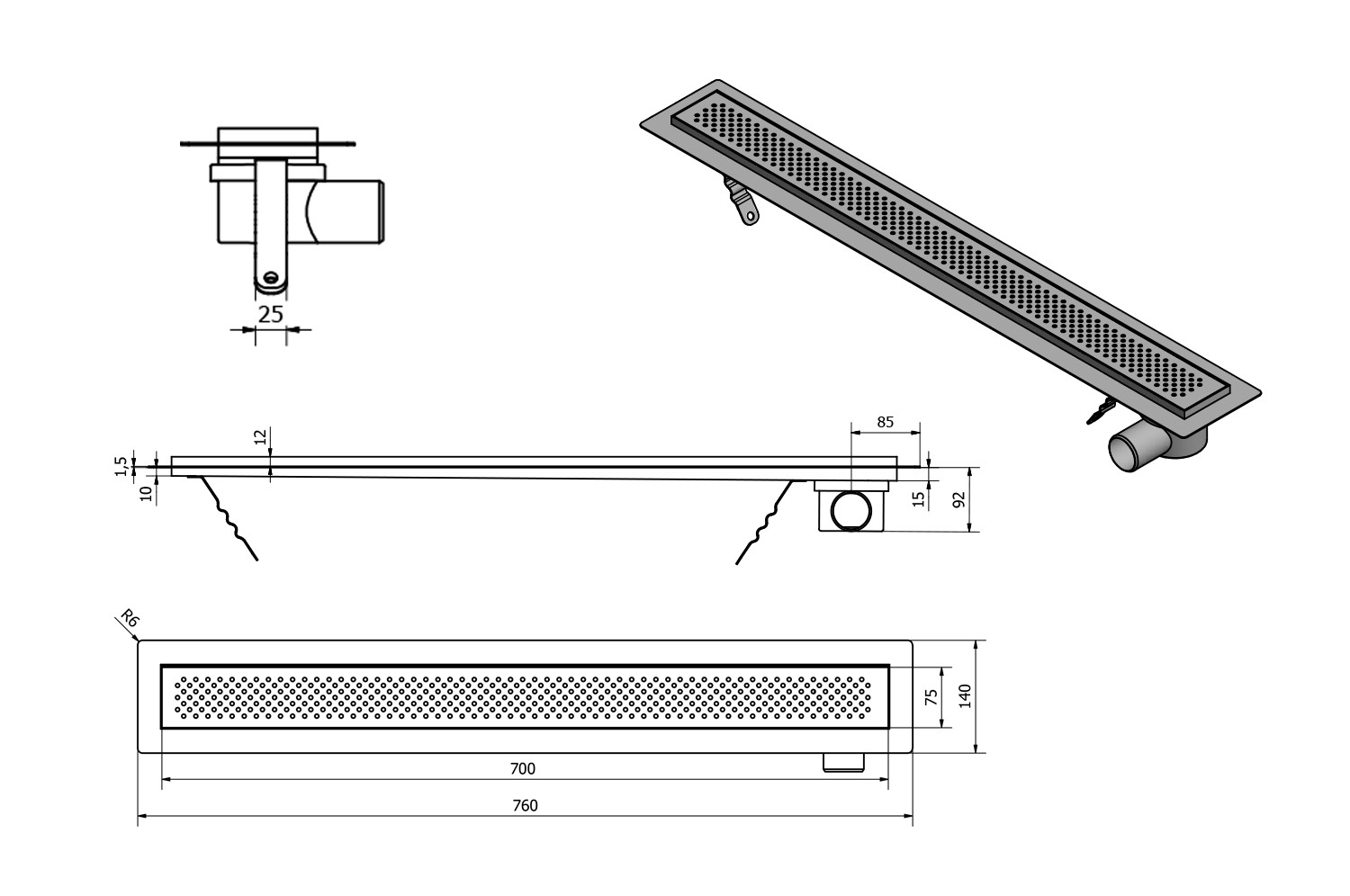 SPD10-P NOK Inox zuhanytálca vonalvezető, 10 mm, jobb