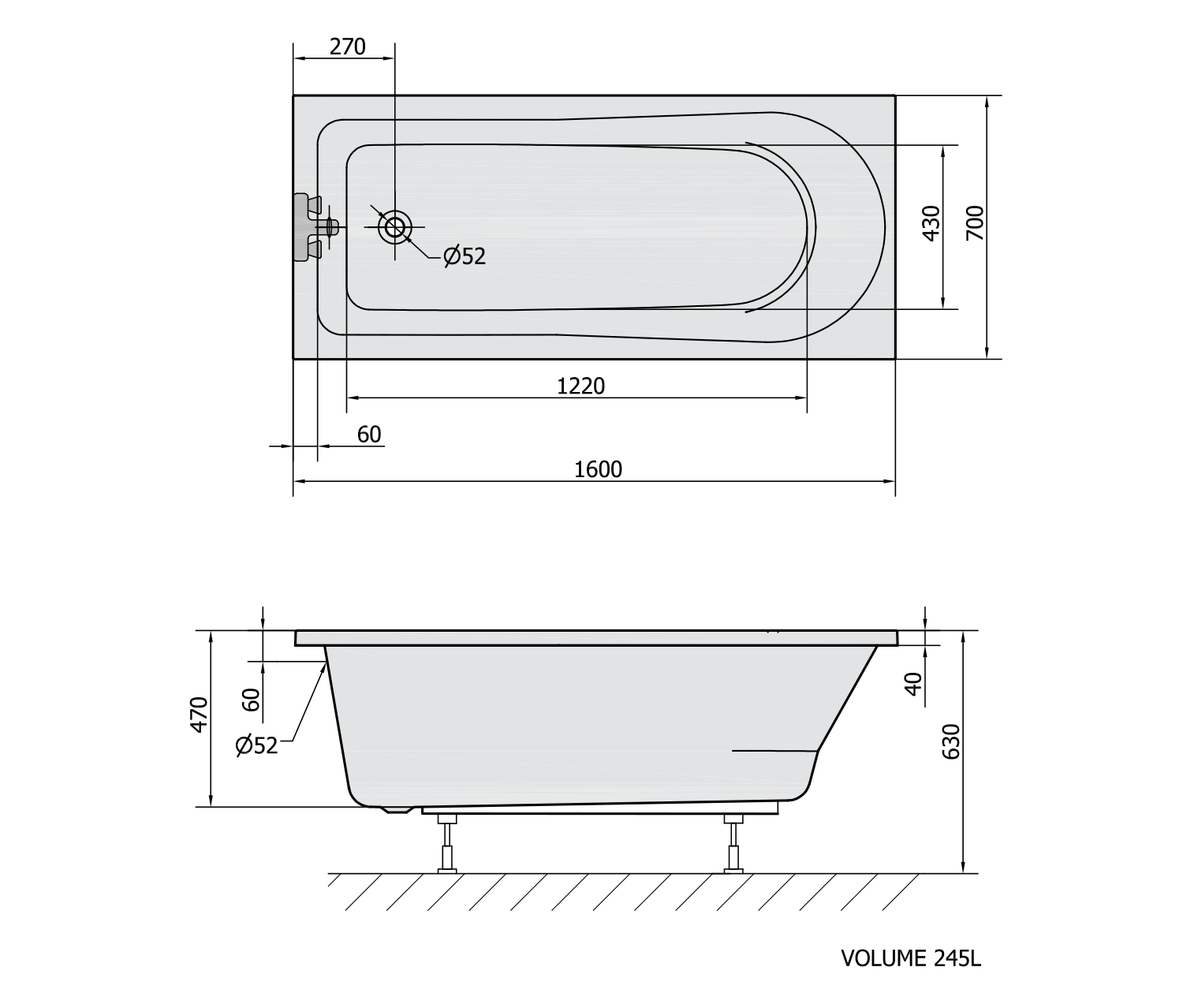 43111 POLYSAN ADRIANA kád, 160x74x45cm