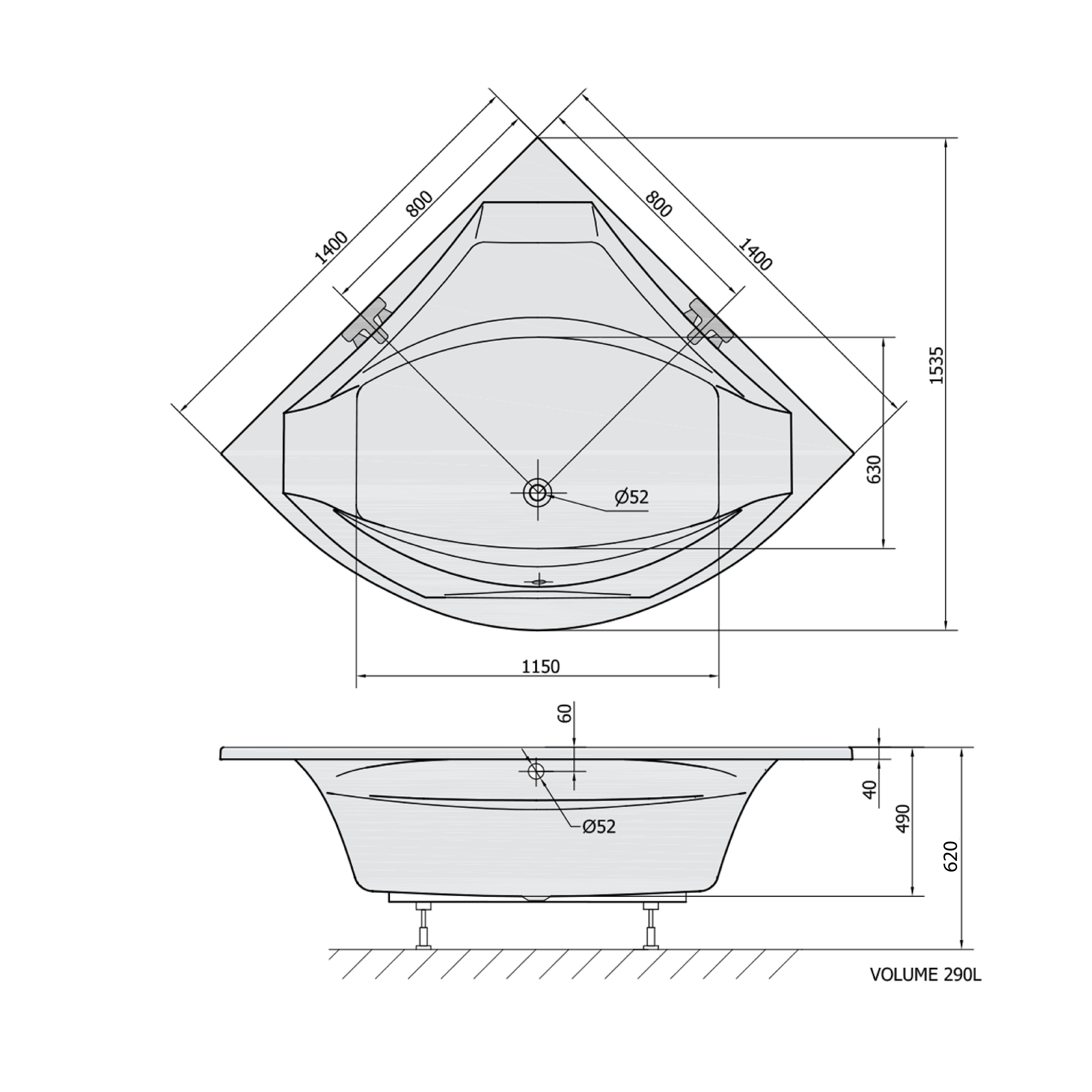 FR140140 POLYSAN lábszerkezet sarokkádhoz, 140x140cm