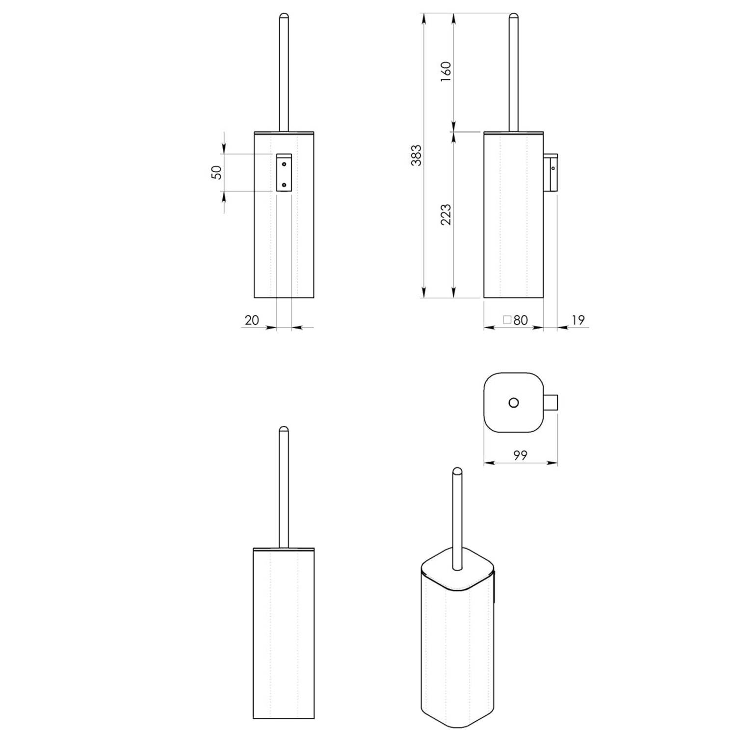 1132 FLORI Álló WC papír és kefe tartó, 670mm, króm
