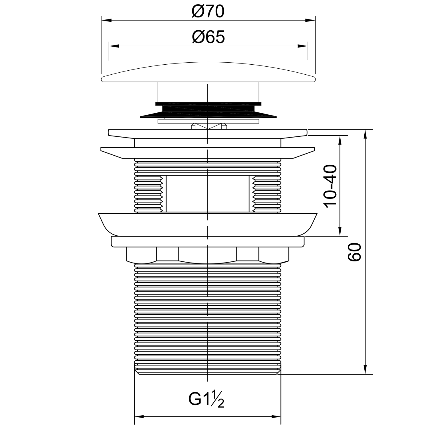 AQUALINE klik-klak kádlefolyó, nagy dugóval, 5/4“, 10-40mm, 60mm, króm (TF5005)