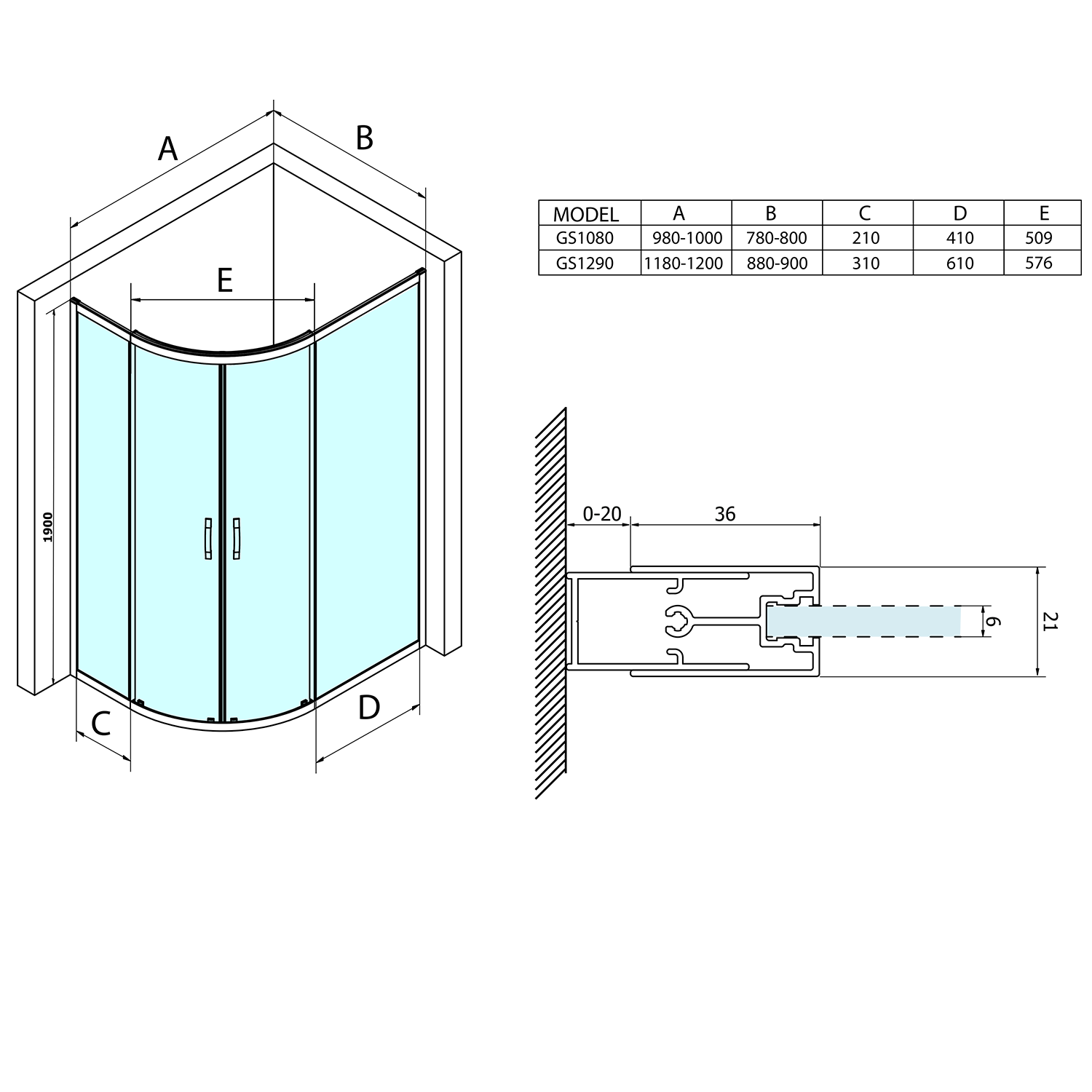 GS2190GS2180 SIGMA SIMPLY szögletes zuhanykabin 900x800mm, balos/jobbos, sarokbelépős