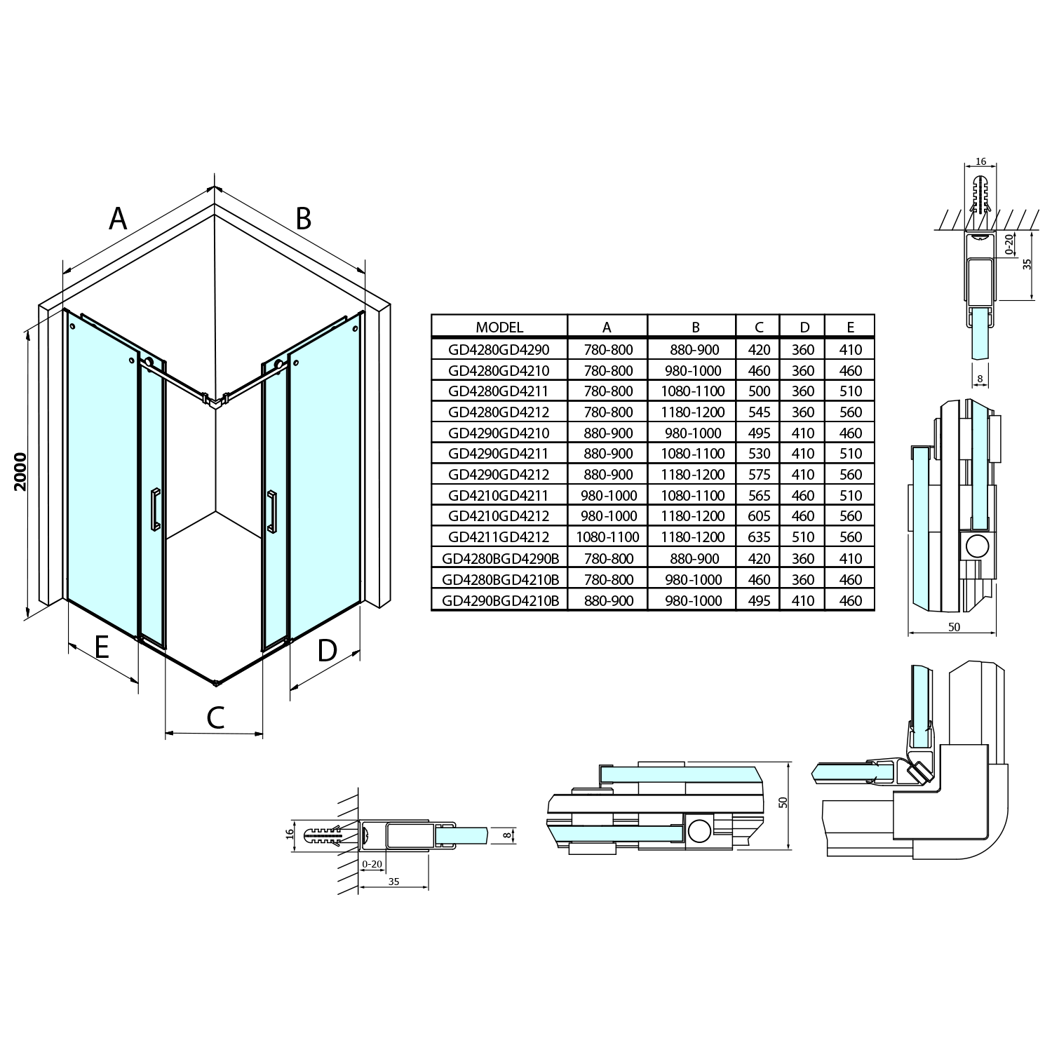 GD4212GD4212 DRAGON szögletes zuhanykabin 1200x1200mm, balos/jobbos, sarokbelépős