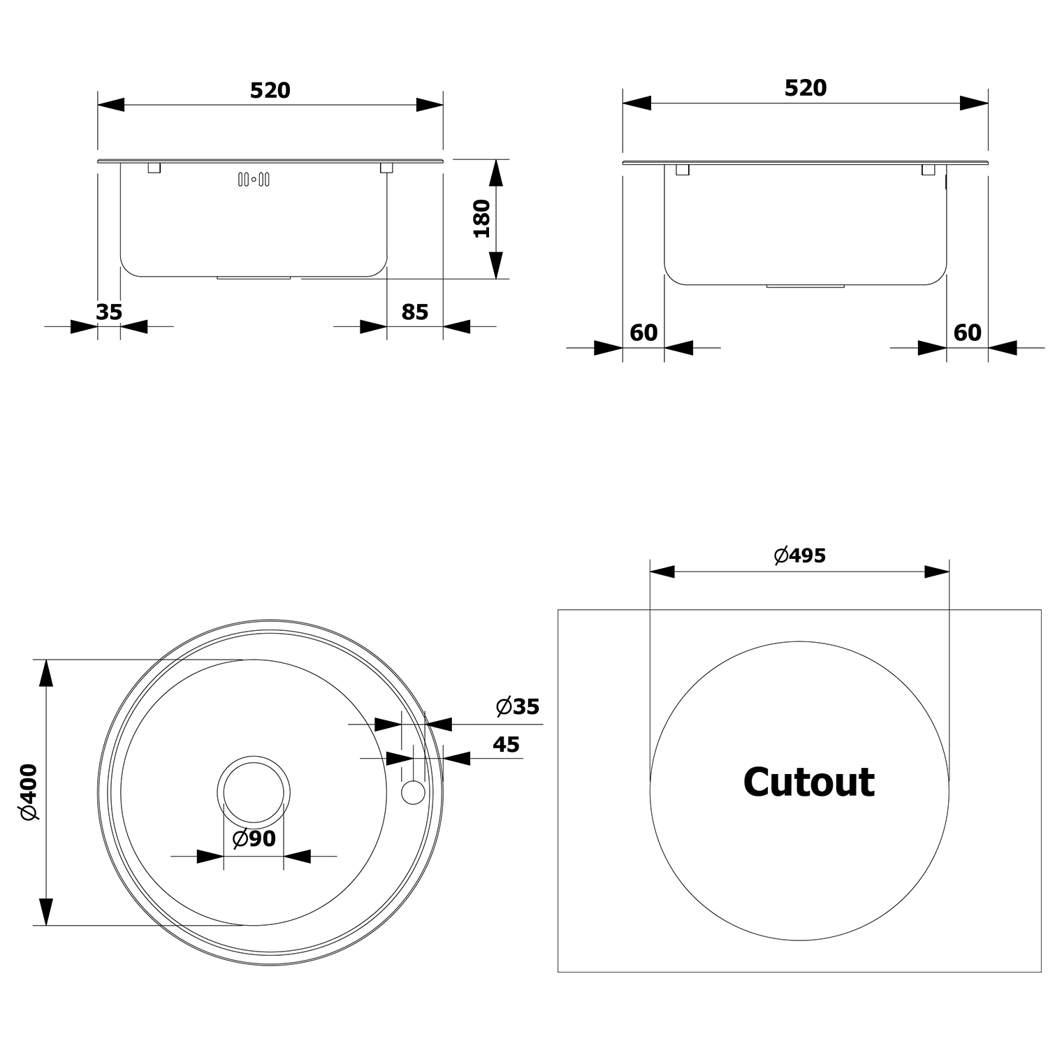 AQUALINE beépíthető mosogatótálca, 51x18cm, inox (AQ051B)