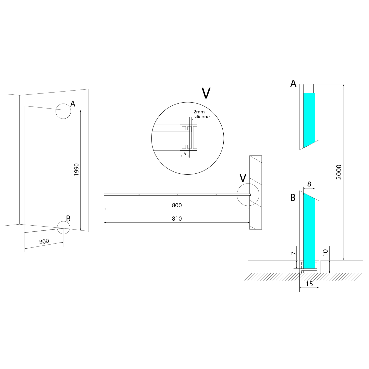 POLYSAN ARCHITEX LINE zuhanyfal, 805x1997x8mm, edzett transzparent üveg (AL2218)
