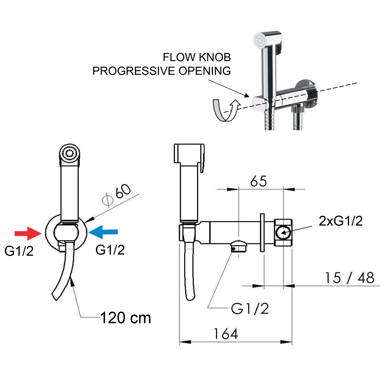 fali bidézuhany progresszív kartussal, matt fekete (DB715)