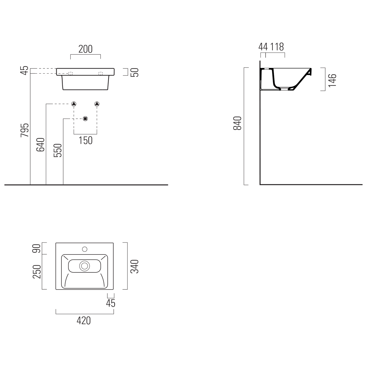 8636311 GSI NORM kerámiamosdó, 60x40cm, 3 furattal, ExtraGlaze, fehér