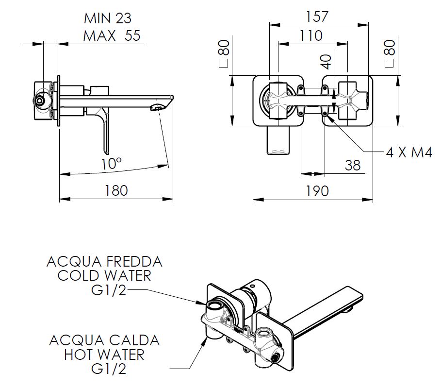XA08 PAX falsík alatti csaptelep, króm