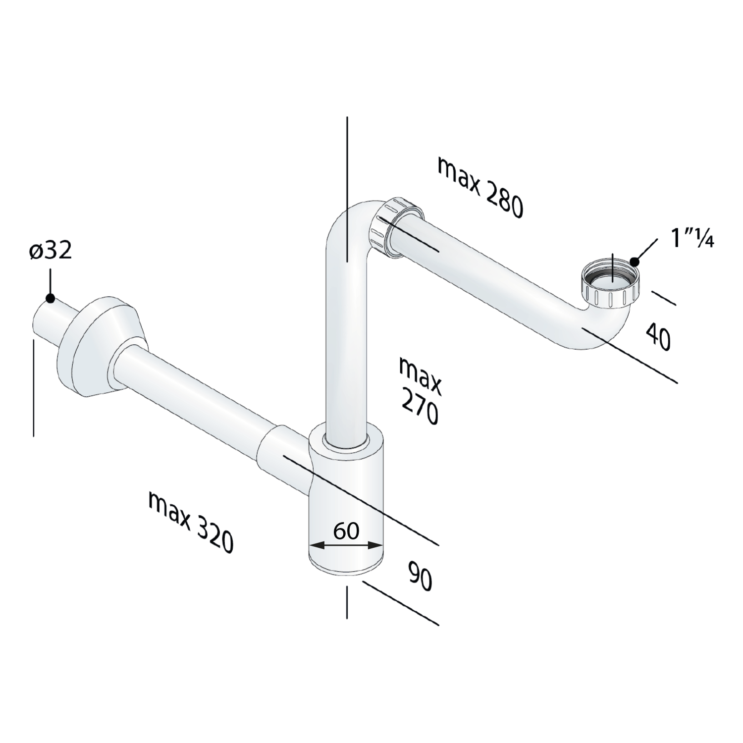 151.032.0 BRUCKNER MURALES helytakarékos szifon, 1'1/4, átm:32mm, fehér