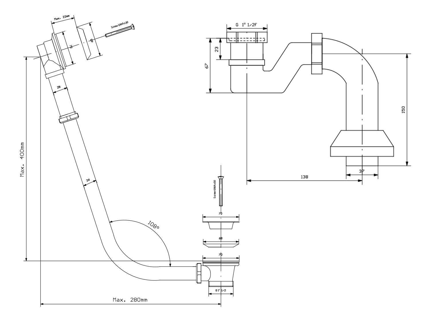 POLYSAN RETRO kád le- és túlfolyó, dugóval, lánccal, arany (71791)