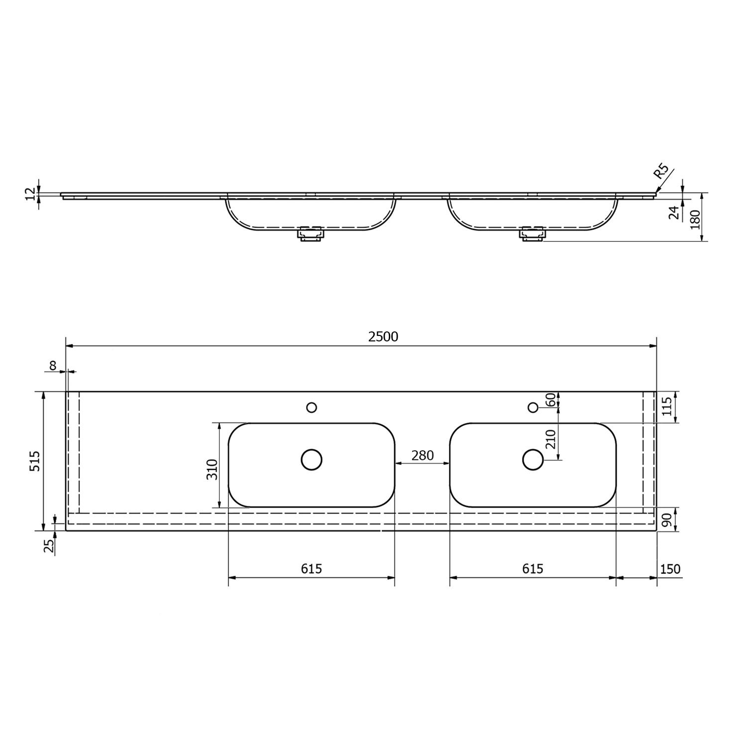 ARUBA Rockstone duplamosdó, jobbos, 250x51,5cm (AR250-B2R)