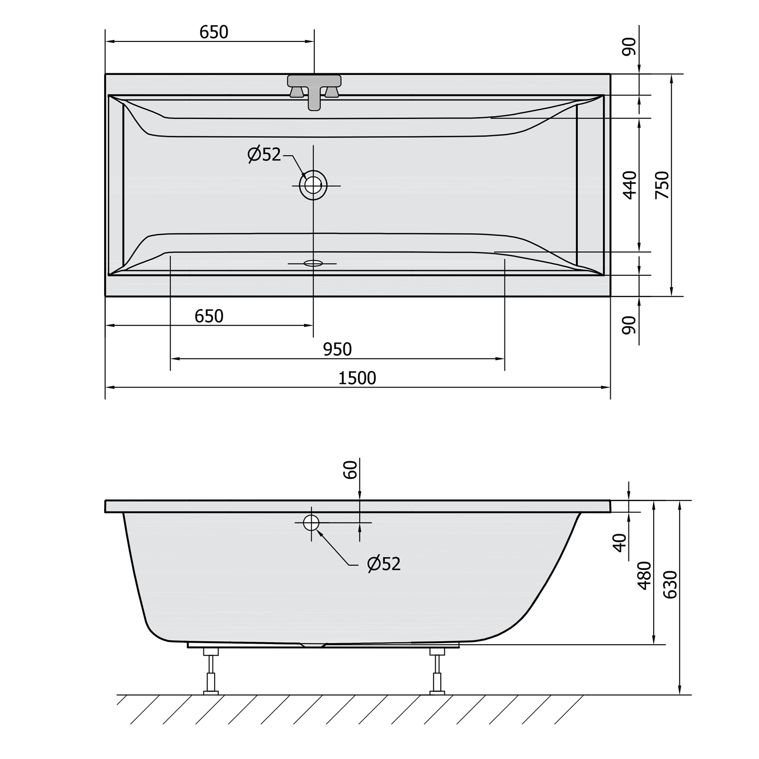 FR15075 POLYSAN lábszerkezet kádhoz, 150x75cm (CLEO 150)