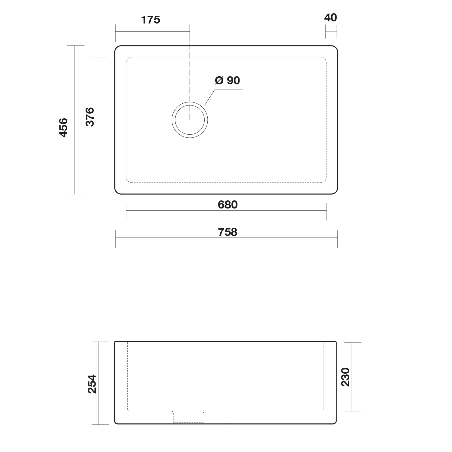 The sink is placed between two countertops or in a cut-out.