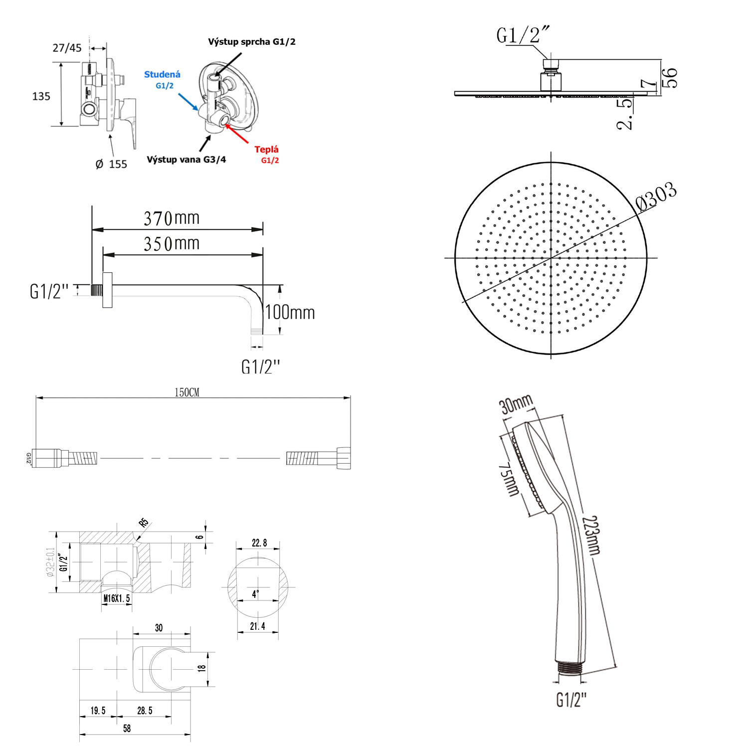 1204-42 kézizuhany, 223mm, ABS/króm (1db)