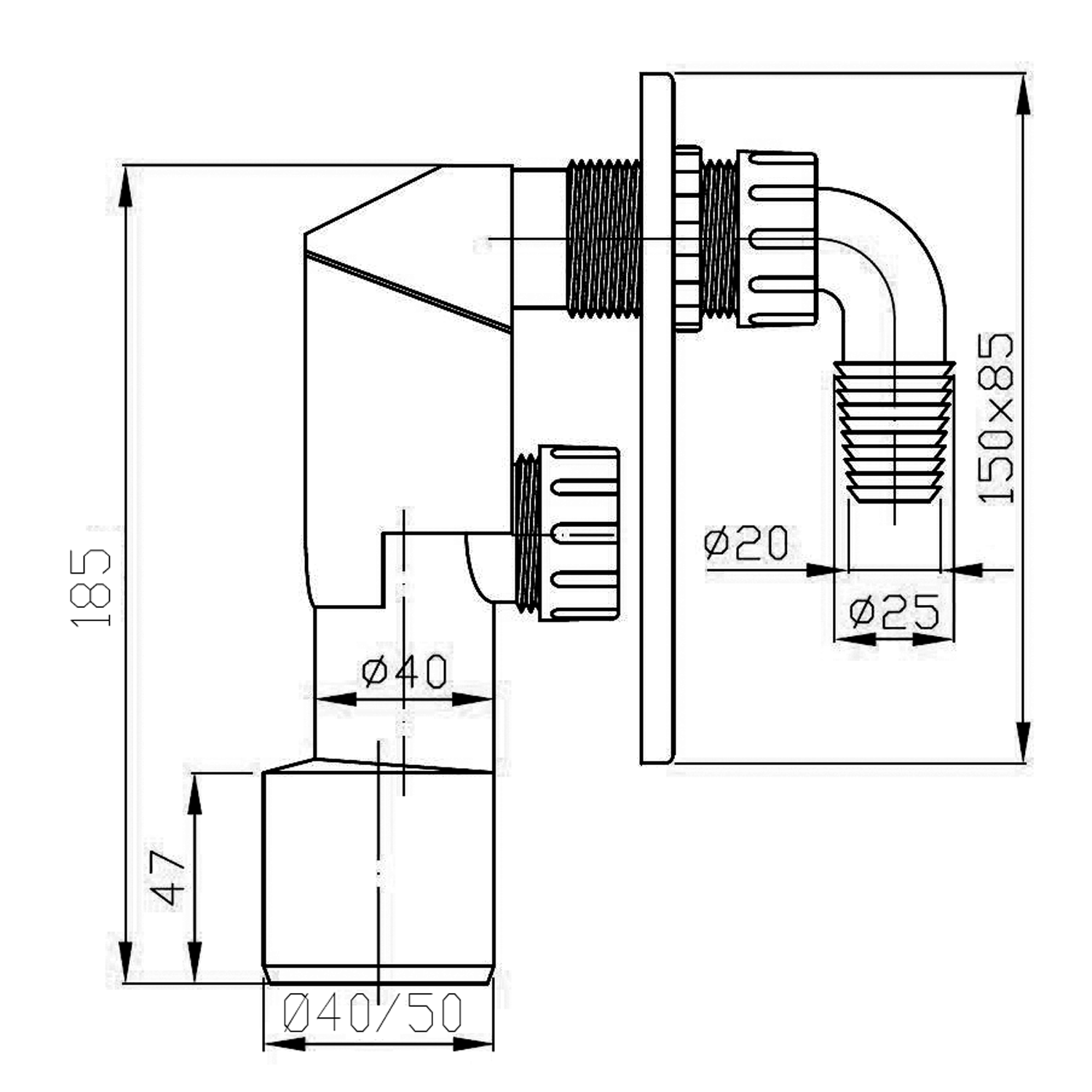 168.345.0 BRUCKNER Mosógép szifon, 40/50mm