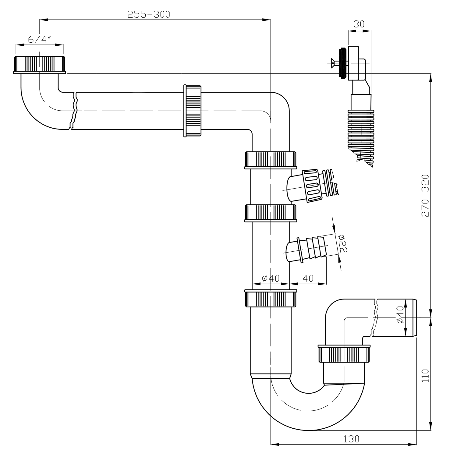 155.124.0 BRUCKNER helytakarékos mosogatószifon, 6/4", DN40