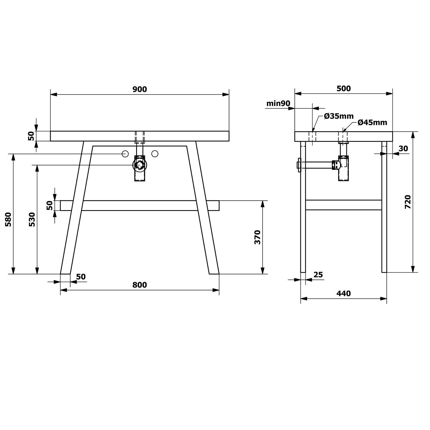 VC442-90-4 TWIGA mosdótartó asztal, 90x72x50cm, matt fekete/roveri tölgy