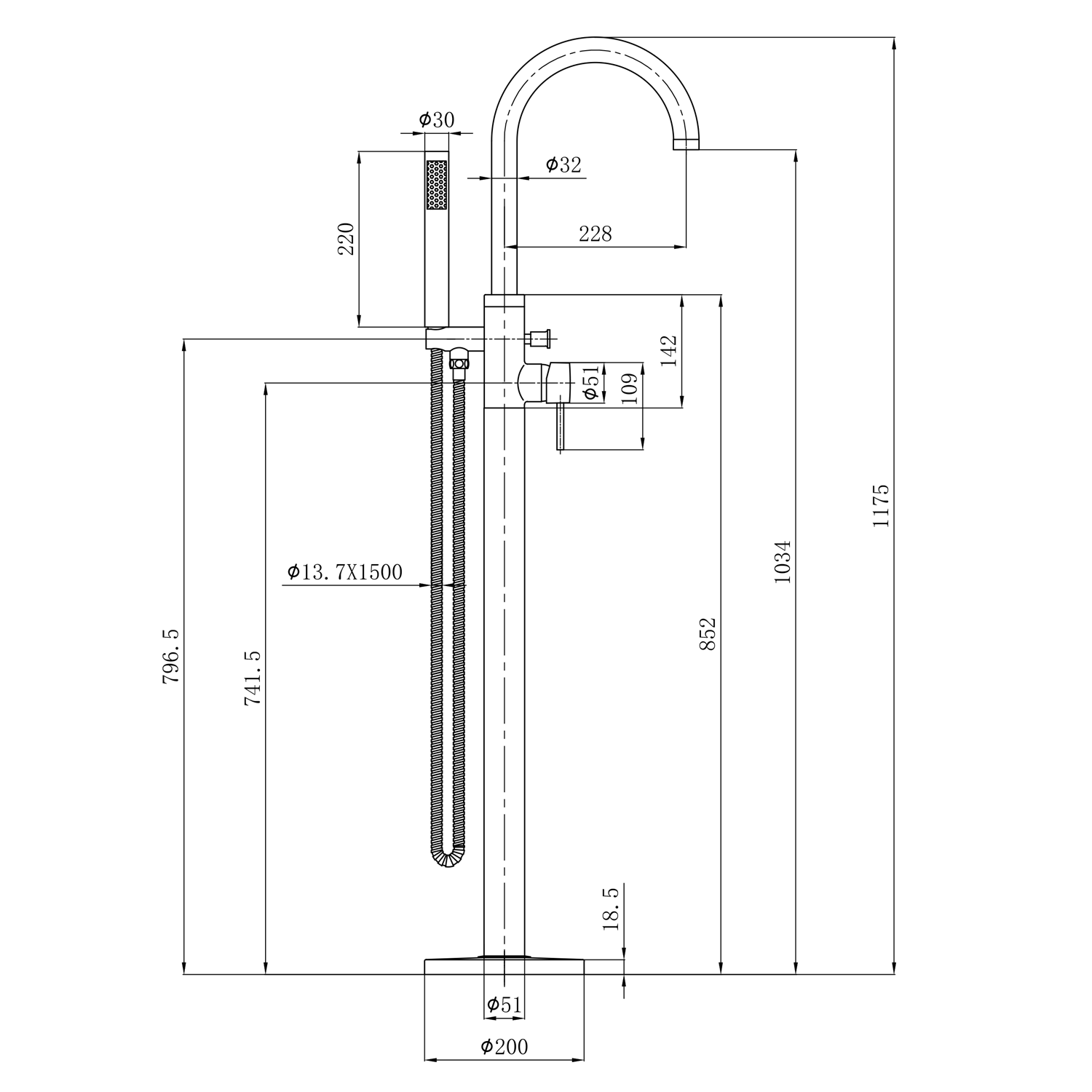AQUALINE CETO térbenálló kádtöltő csaptelep, króm (BV357)