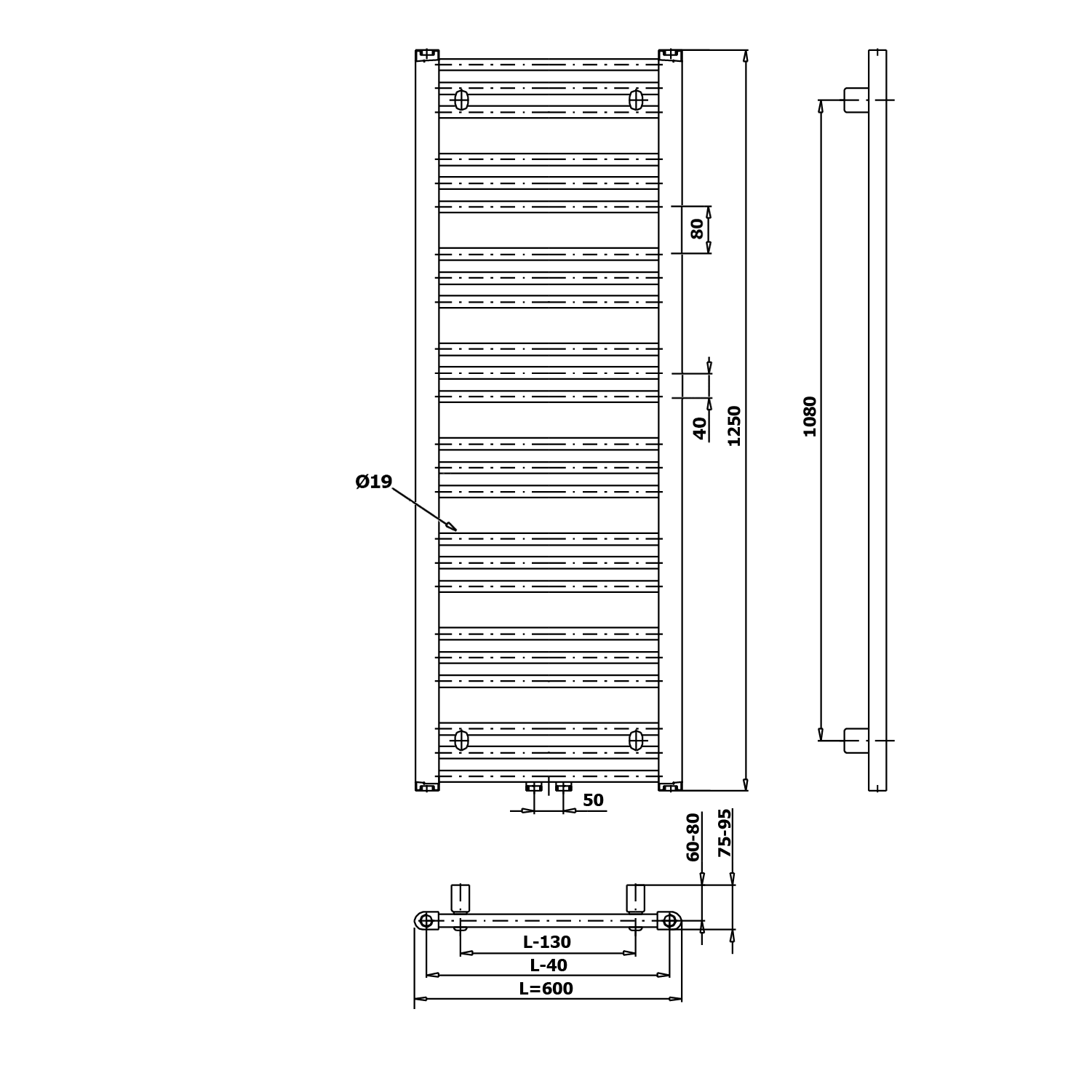BRUCKNER ALBRECHT fürdőszobai radiátor, 600x1250mm (600.117.4)