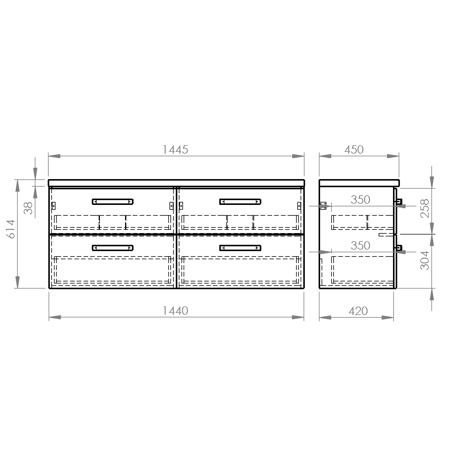 Furniture is equipped travels drawers with slow release and an automatic closing movement drawers. No more noisy closing.