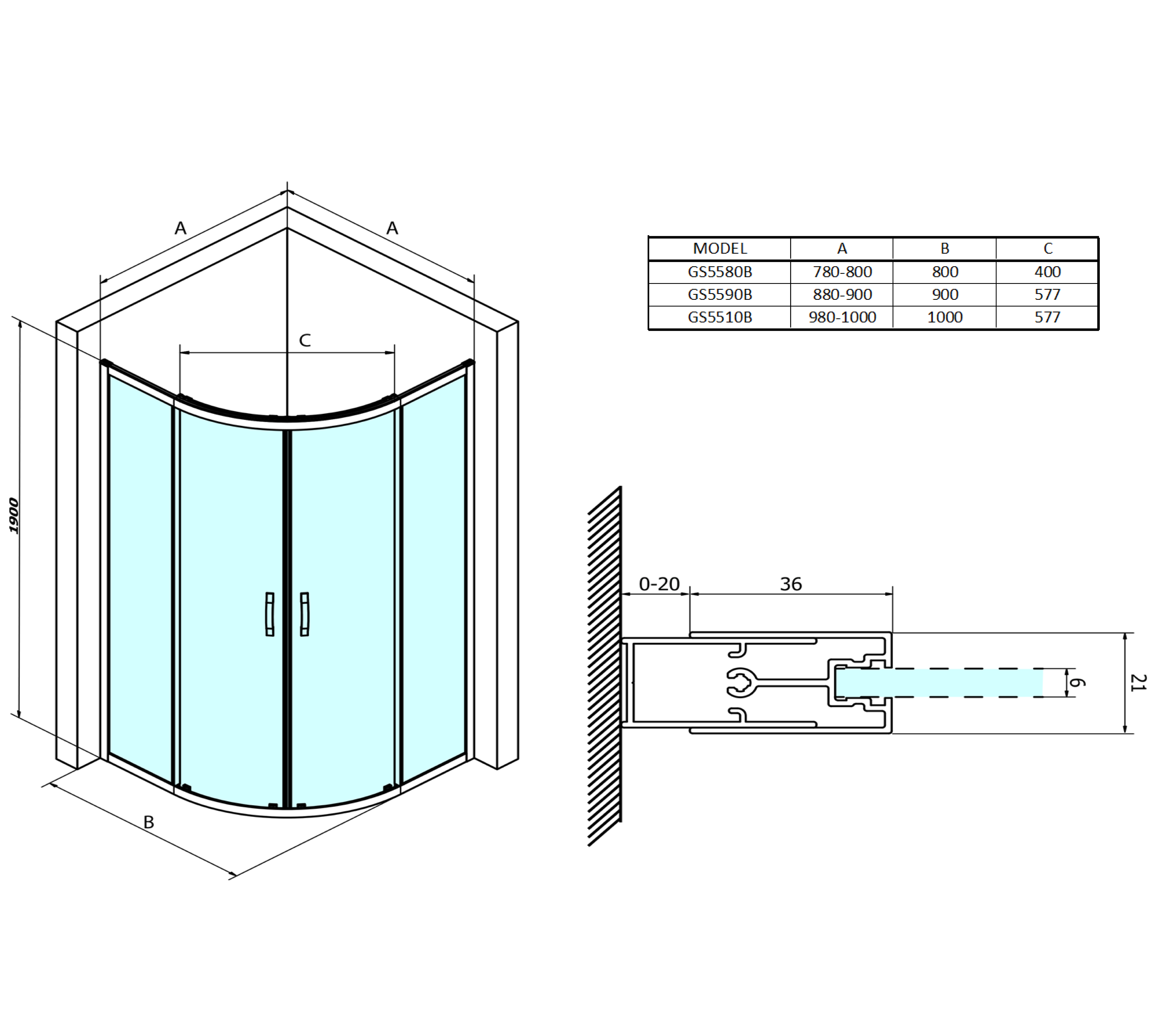 GS2190BGS2180B SIGMA SIMPLY BLACK szögletes zuhanykabin 900x800mm, balos/jobbos, sarokbelépős