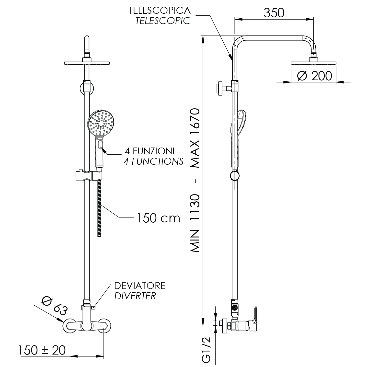 SzerelésFali 150 mm