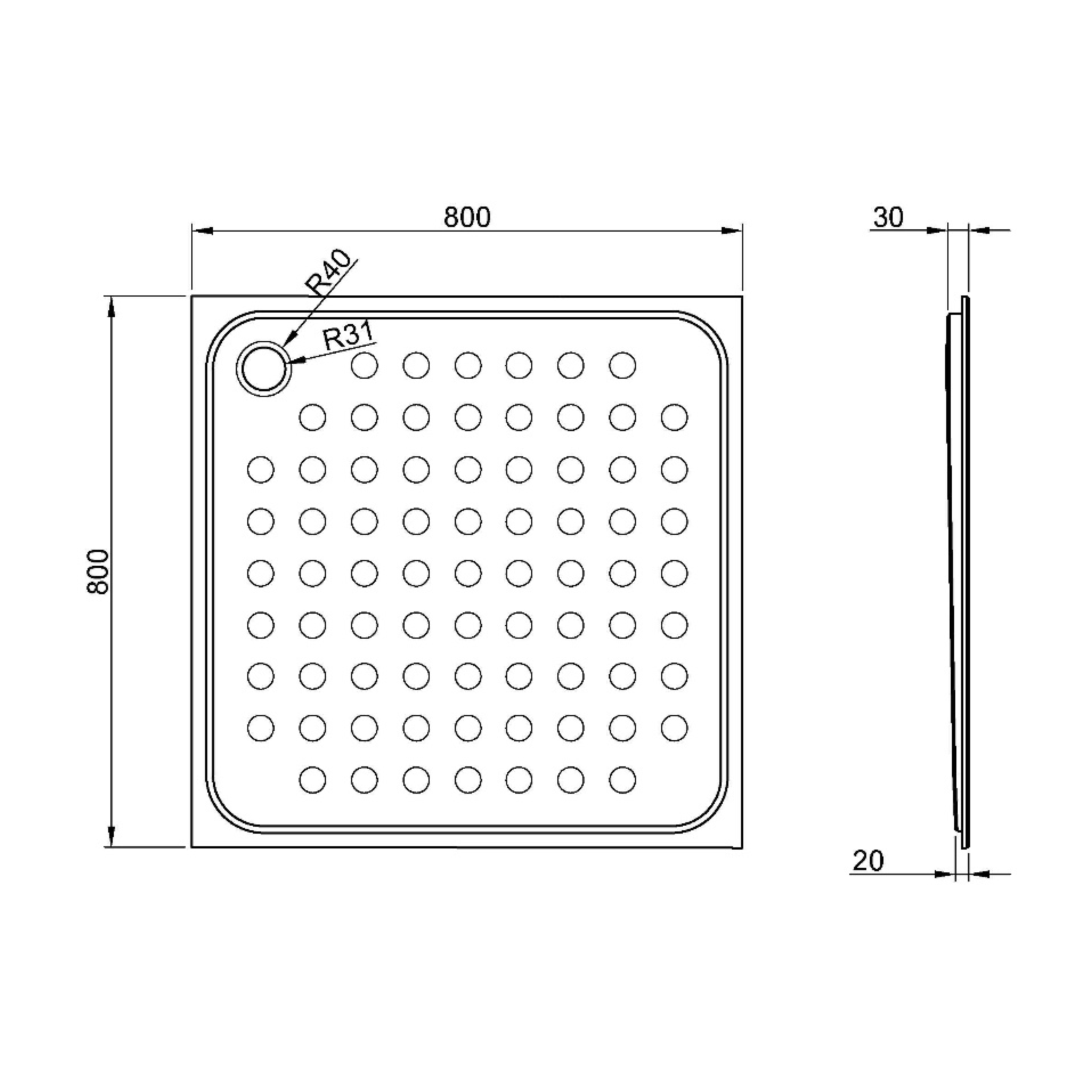 NOFER zuhanytálca, 800x30x800mm, matt rozsdamentes acél (13052.80.S)