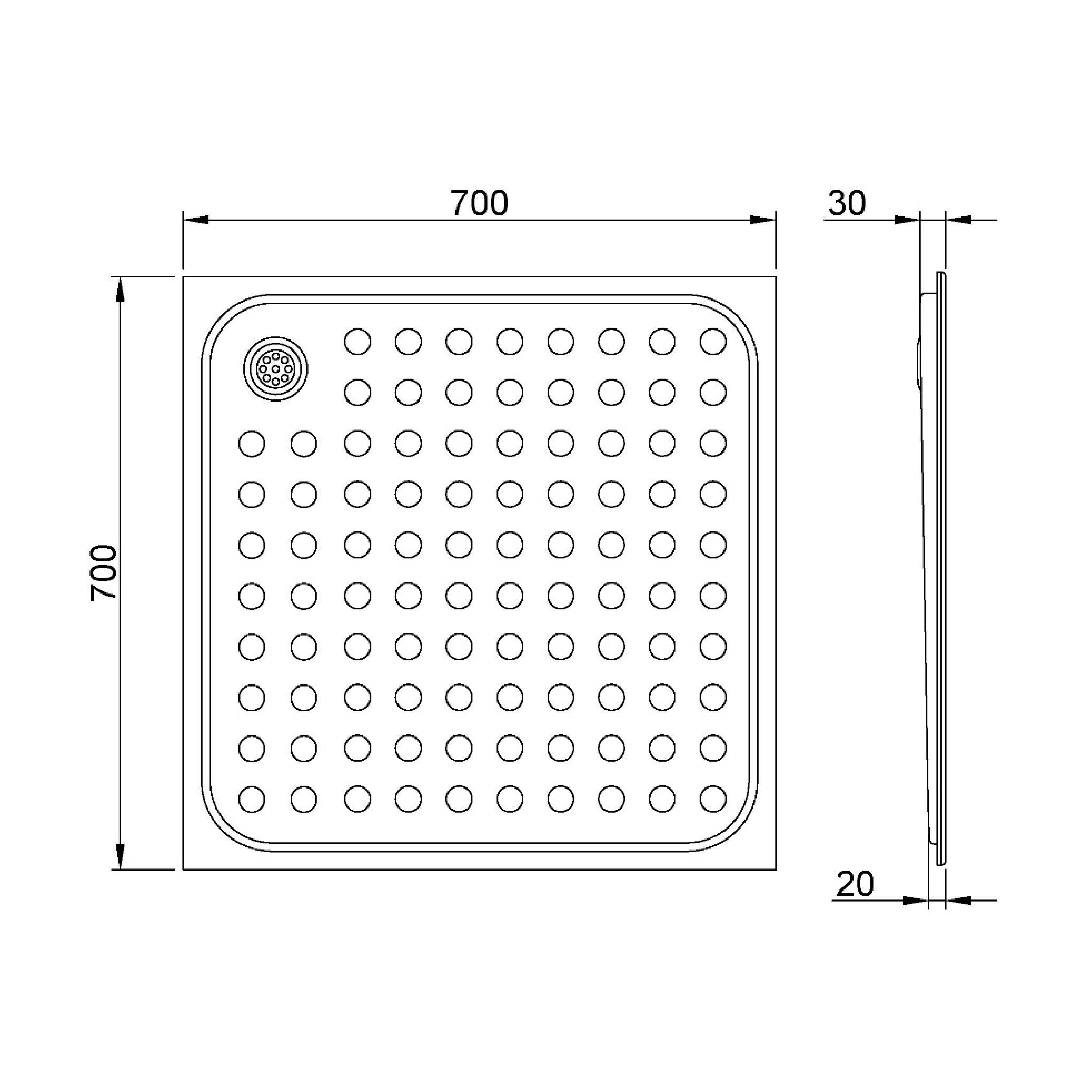 NOFER zuhanytálca, 700x30x700mm, matt rozsdamentes acél (13052.70.S)