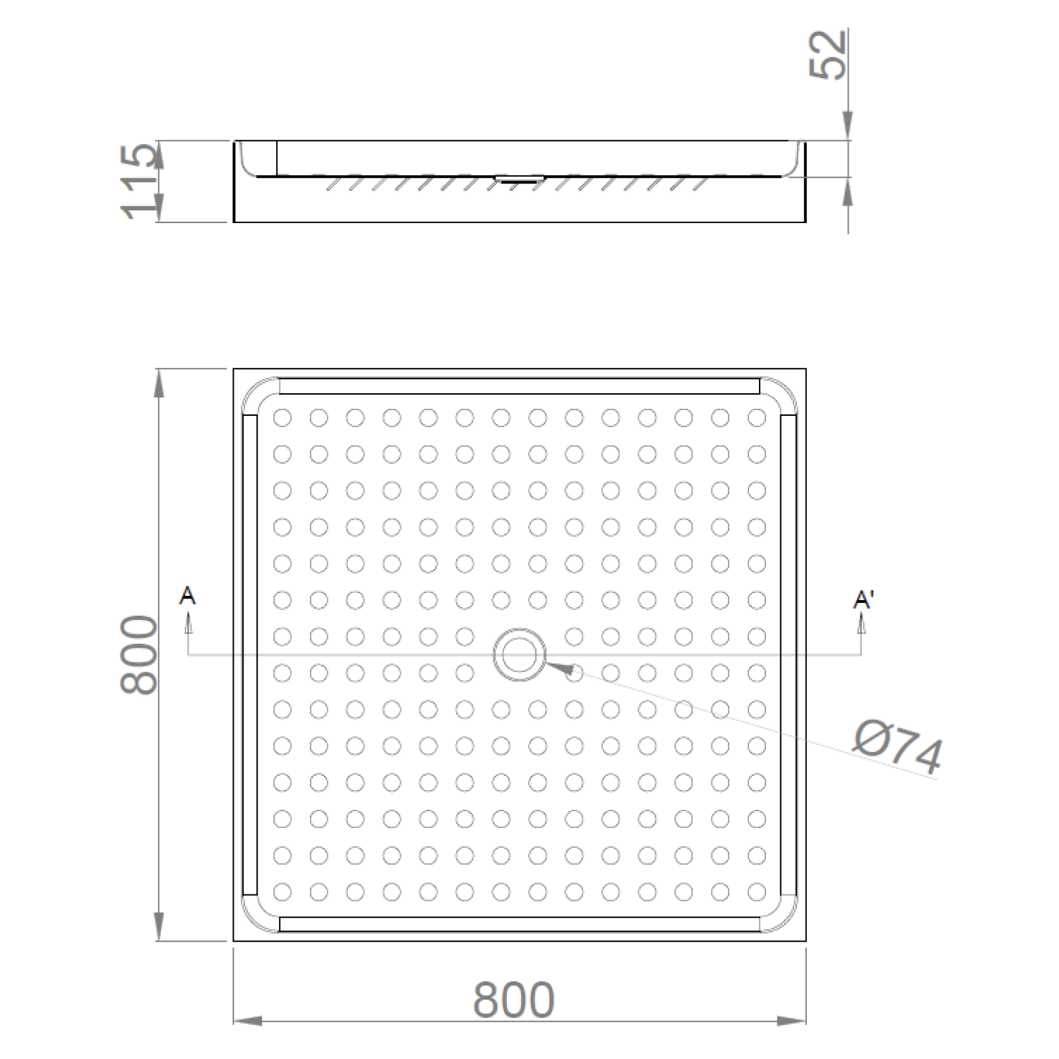 NOFER zuhanytálca, 800x115x800mm, matt rozsdamentes acél (13055.2.S)