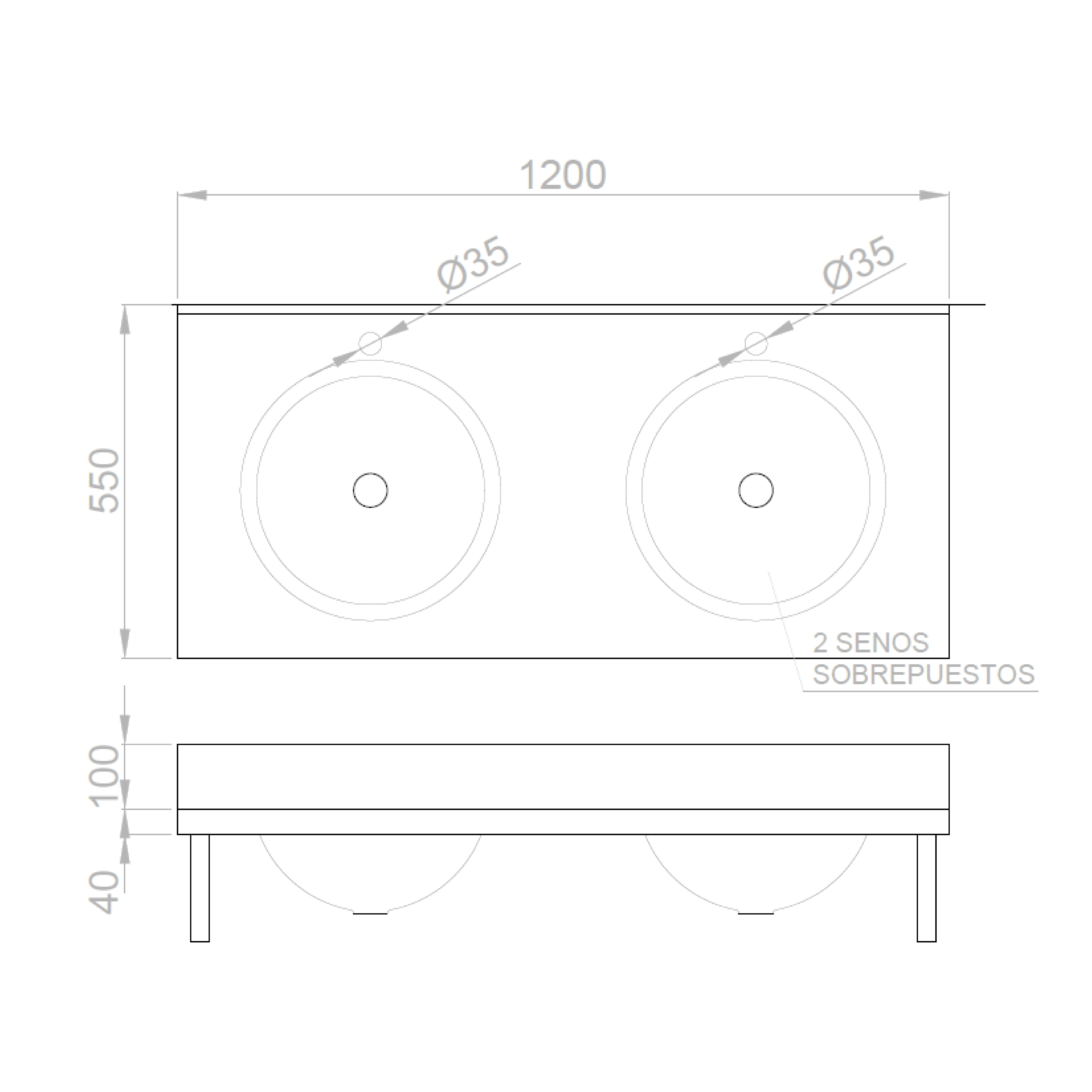 NOFER pult kettő süllyesztett mosdóval, 1200x254x550mm, matt rozsdamentes acél (13071.2.S)