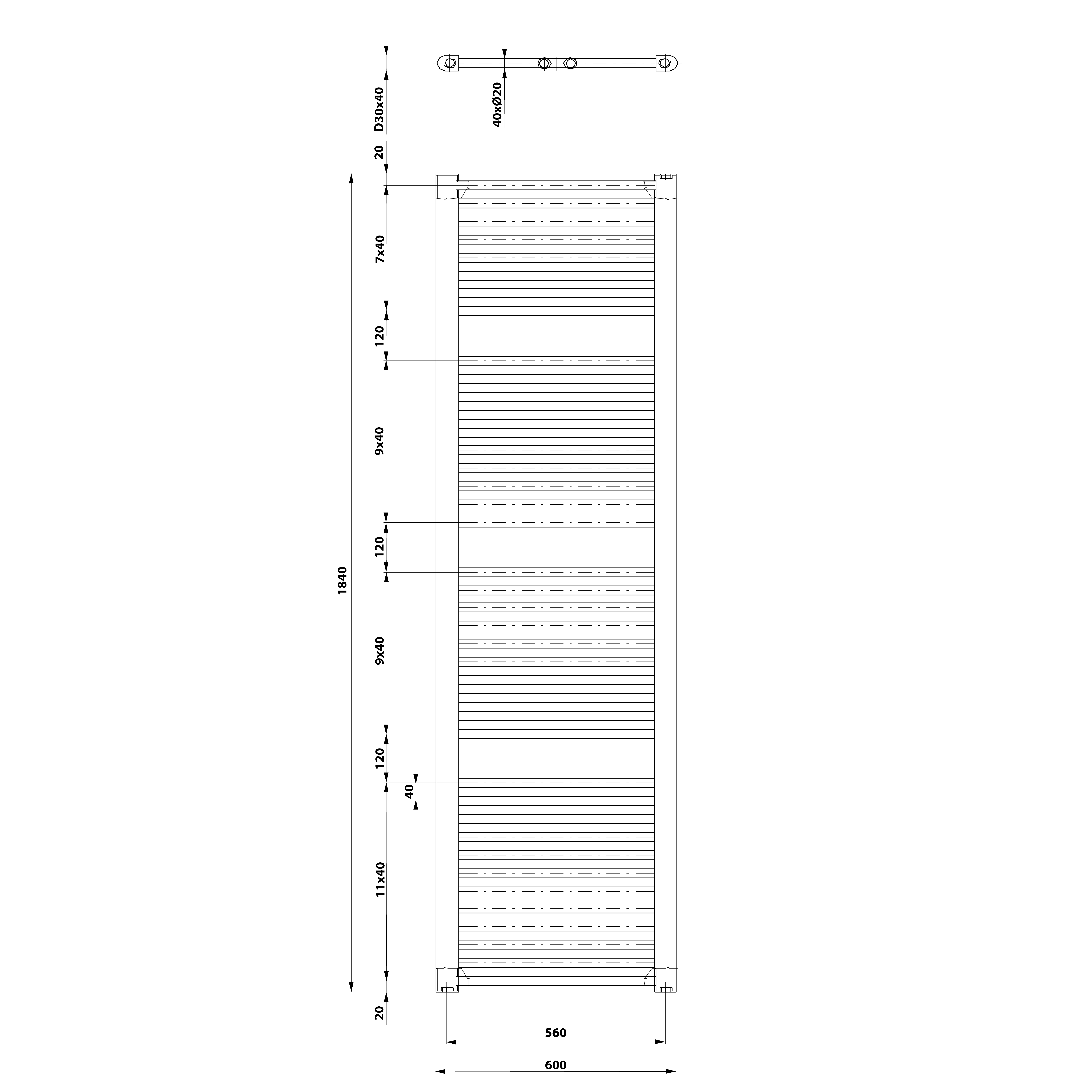 ILR66B AQUALINE DIRECT Fürdőszobai radiátor, egyenes, 600x1680mm, matt fekete