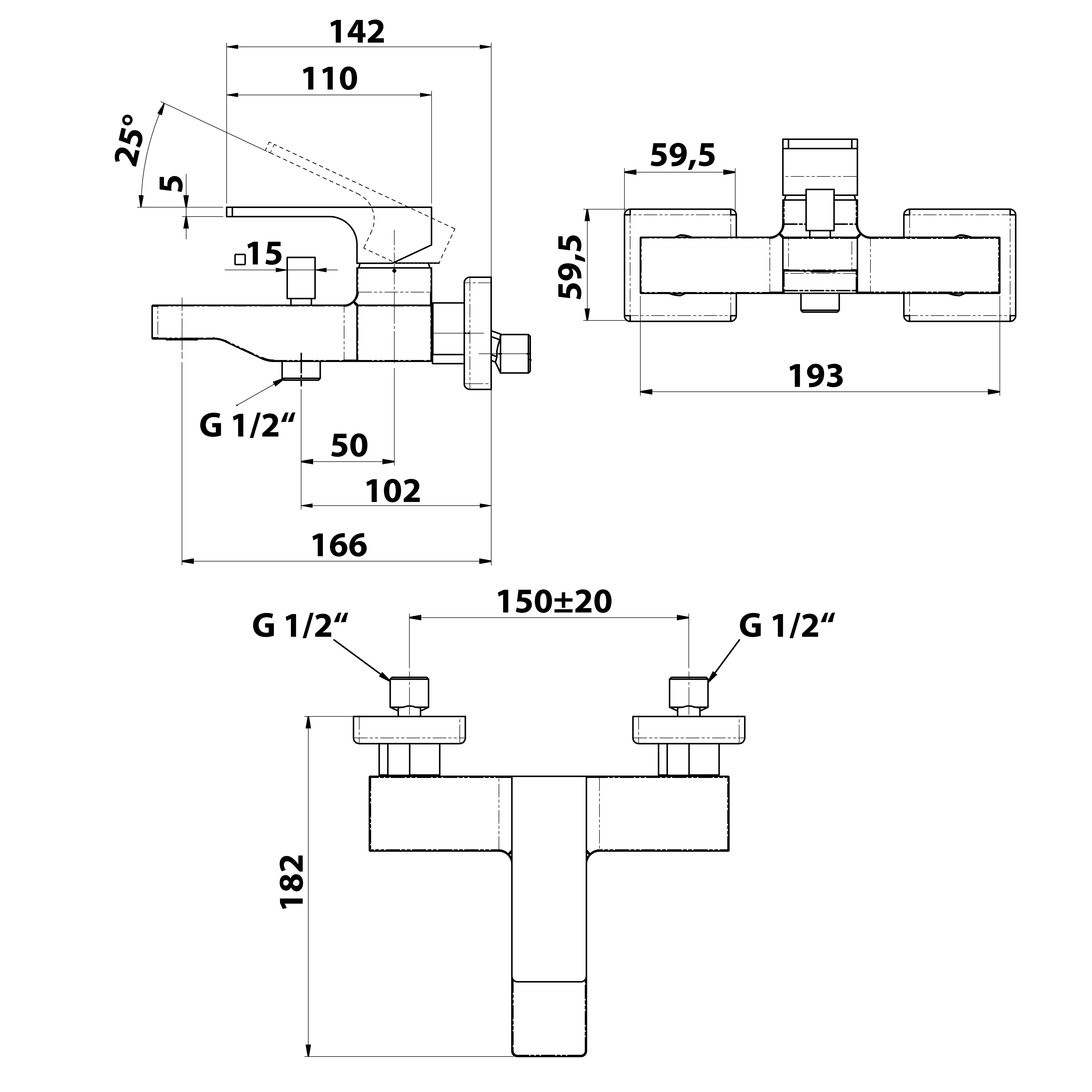 FT010 FORATA fali kádtöltő csaptelep, króm