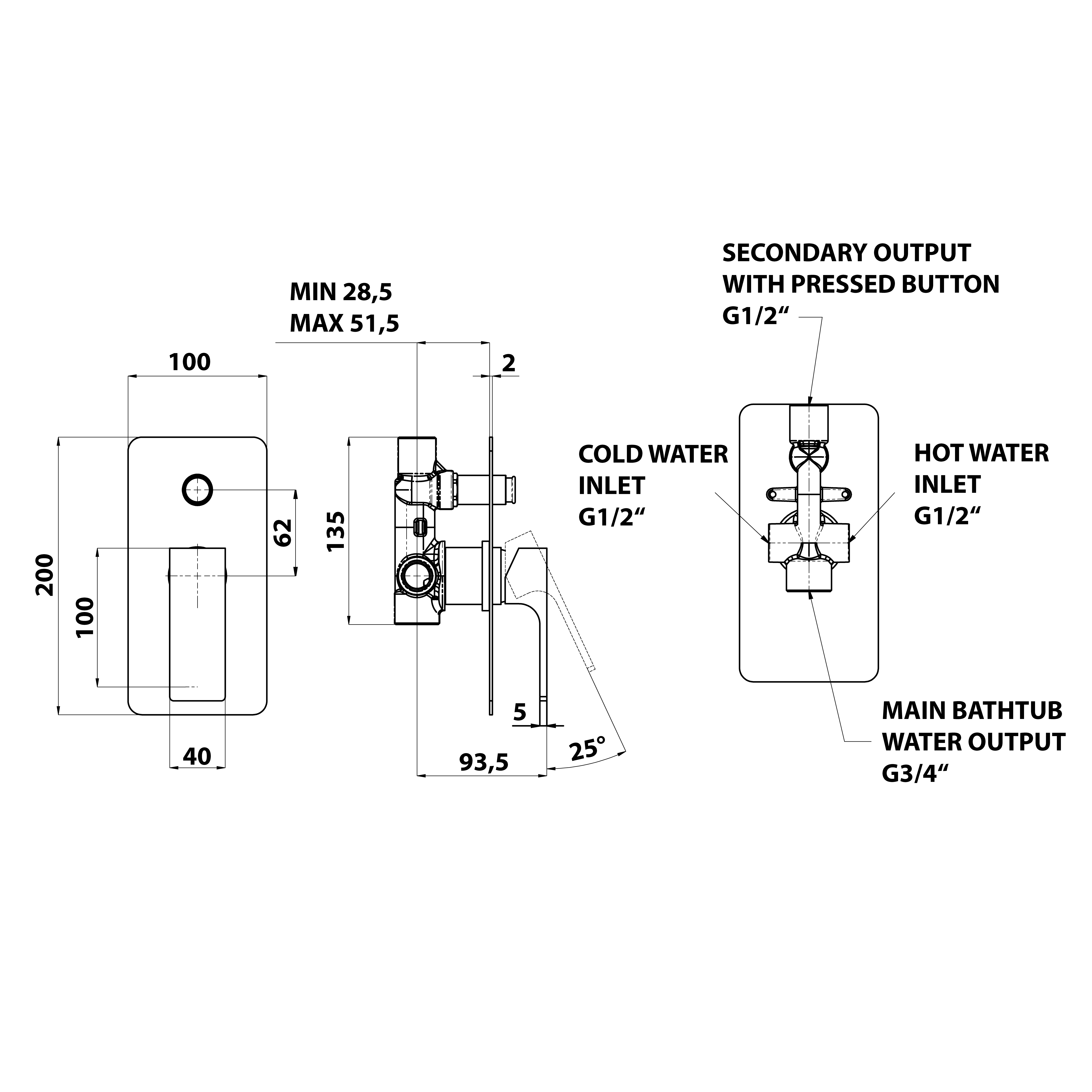 FT010 FORATA fali kádtöltő csaptelep, króm
