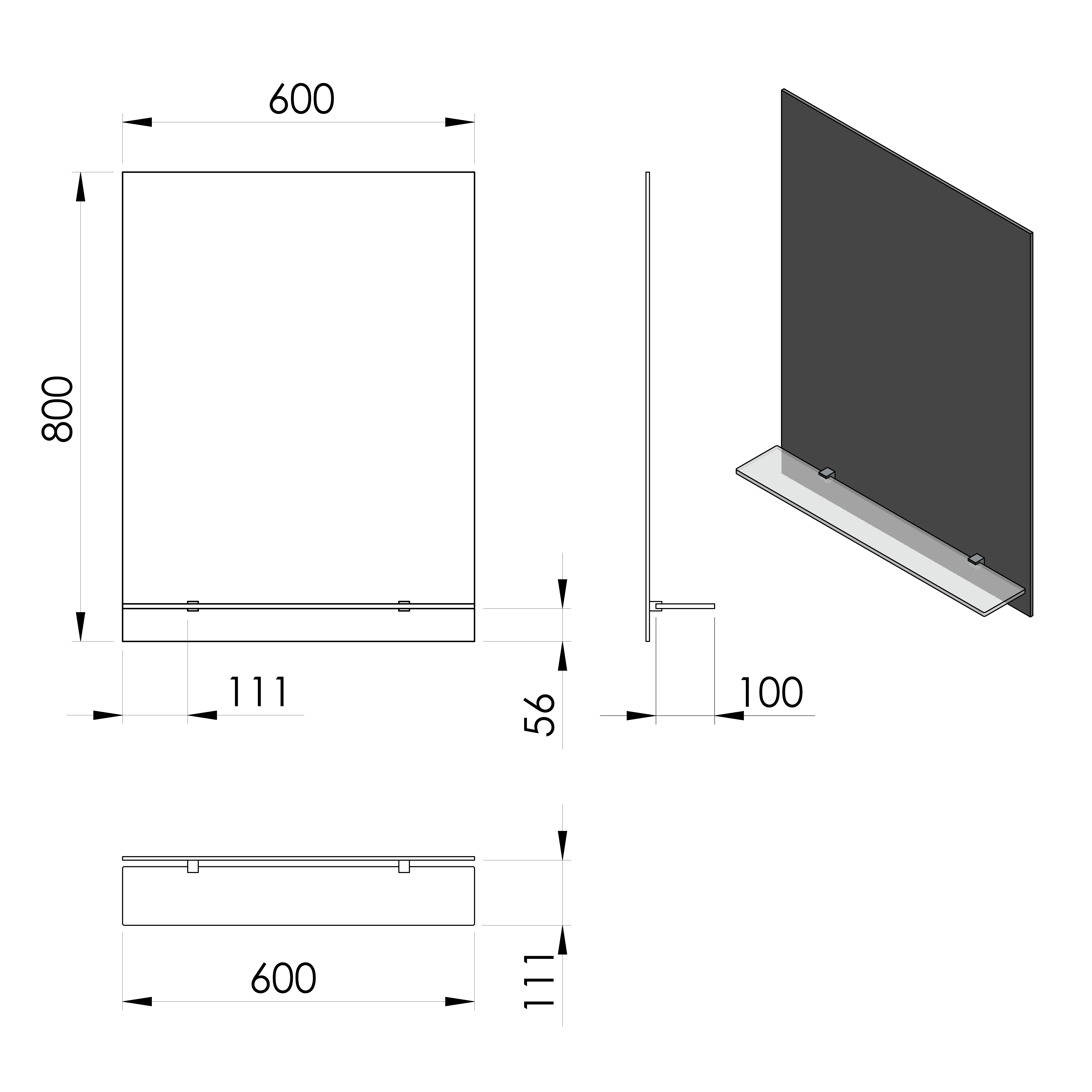 AQUALINE Tükör furattal, üvegpolccal, 60x80cm (22430-01)