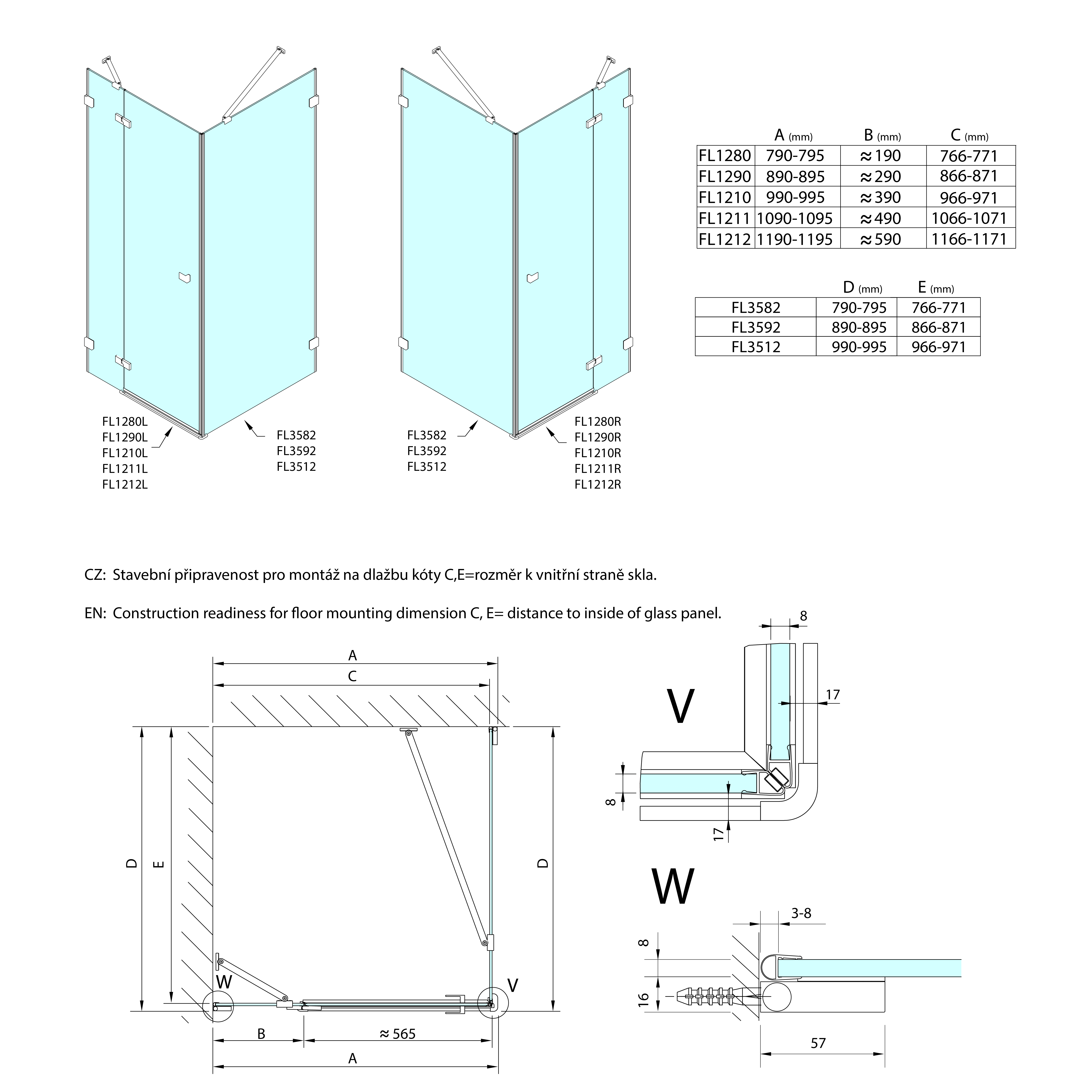 FL1280R POLYSAN FORTIS EDGE nyílóajtó sarokbelépéshez, 800mm, transzparent üveg