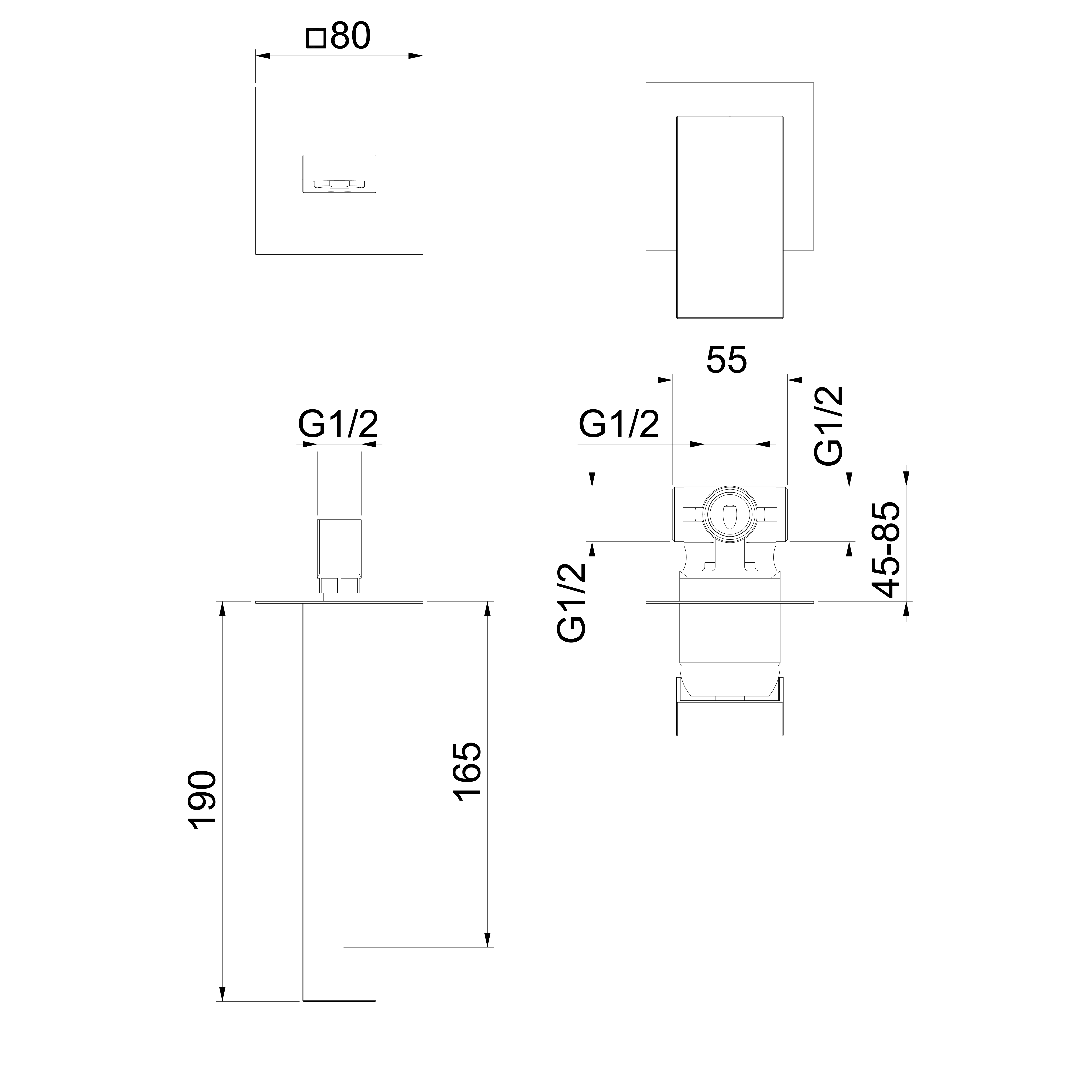 1102-76B SPECTRE falsík alatti zuhanycsaptelep, 1-irányú váltóval, zuhanyszett nélkül, matt fekete