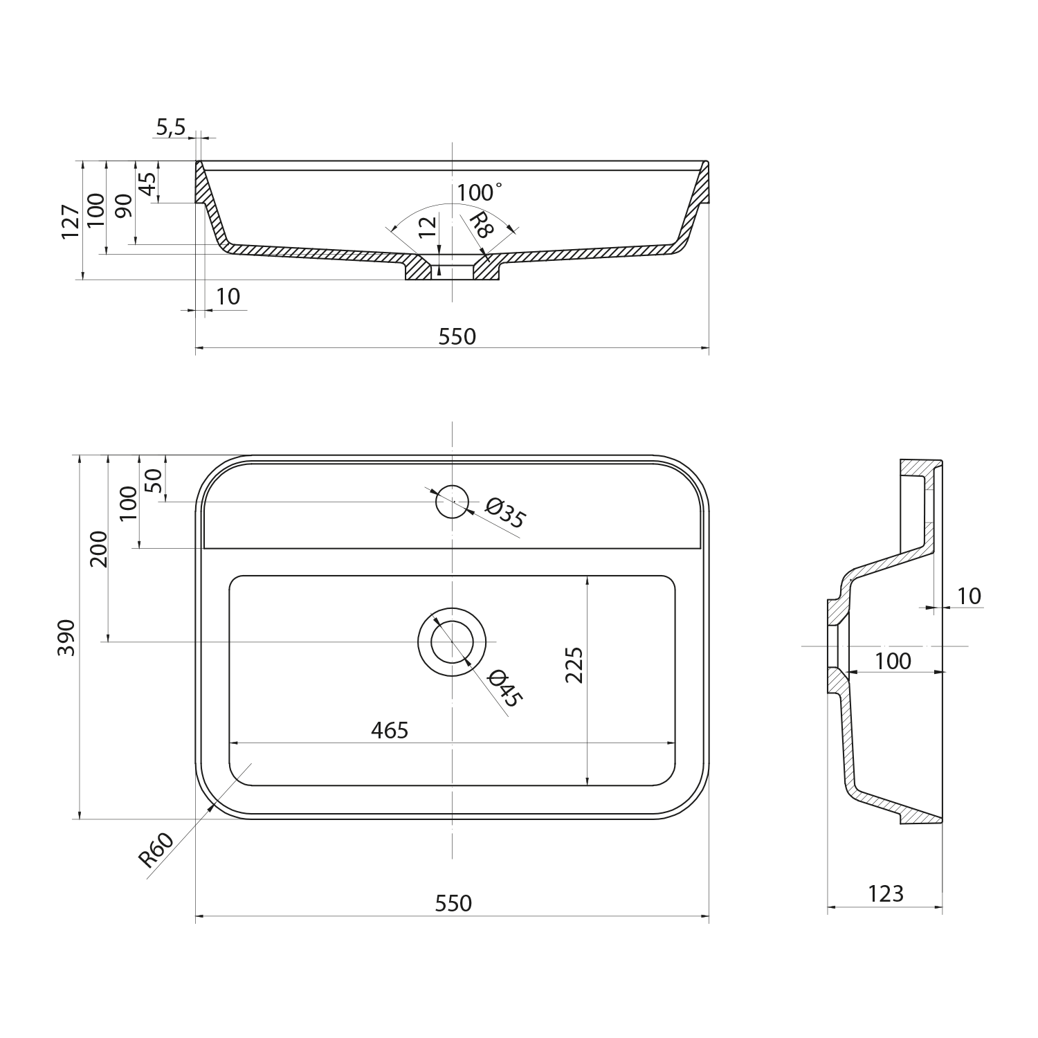 BRAHEA pultbasüllyeszthető rockstone mosdó, 55x39cm, matt fehér (BE755)