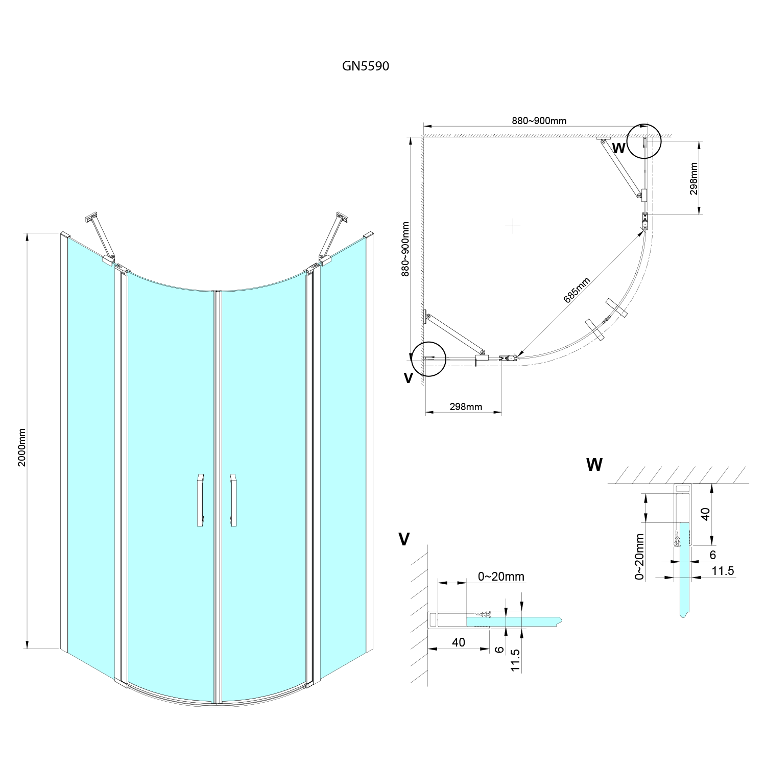 GN5590 GELCO LORO íves zuhanykabin, 900x900mm, transzparent