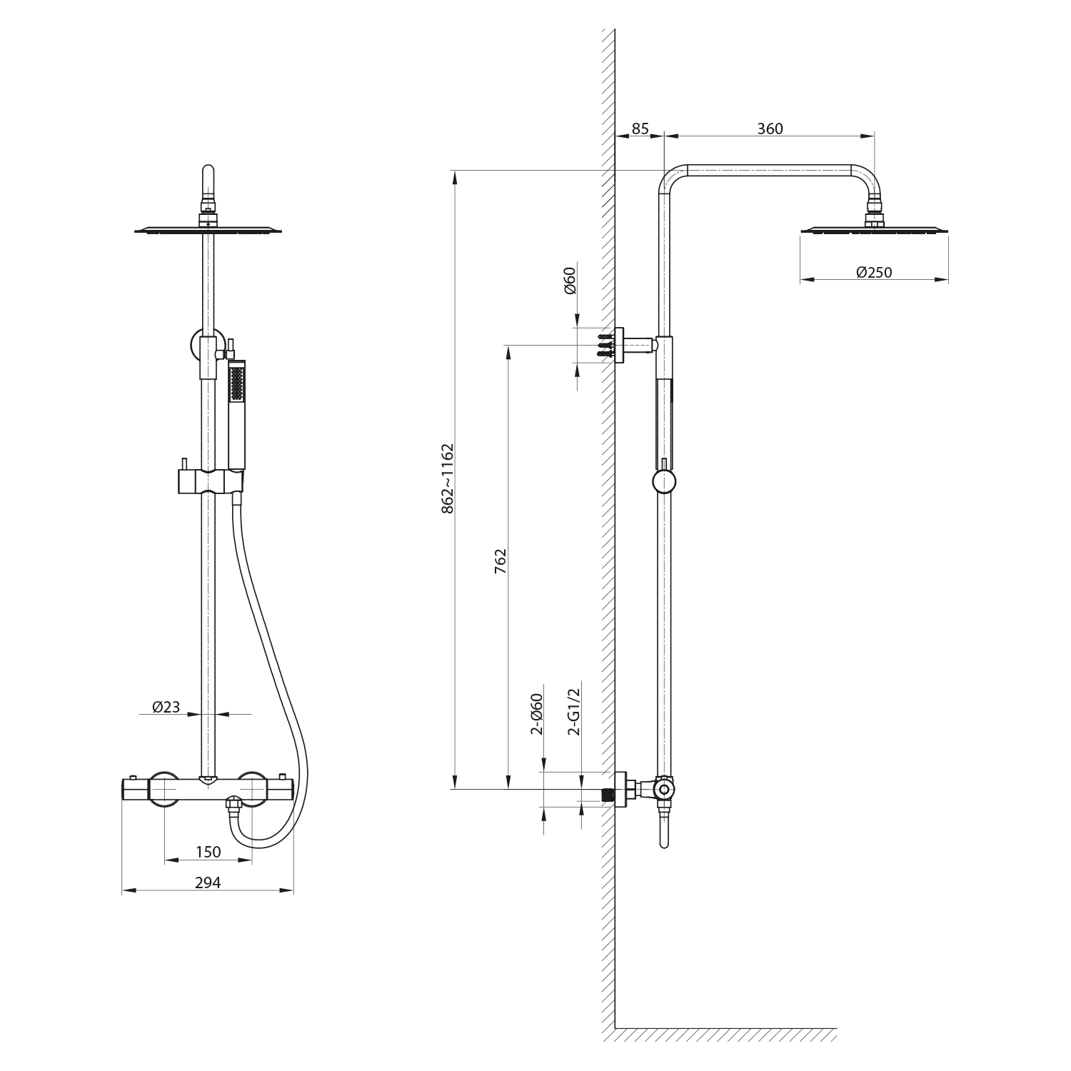 Zuhanyoszlop rúd átmérőjeÁtmérő 23 mm