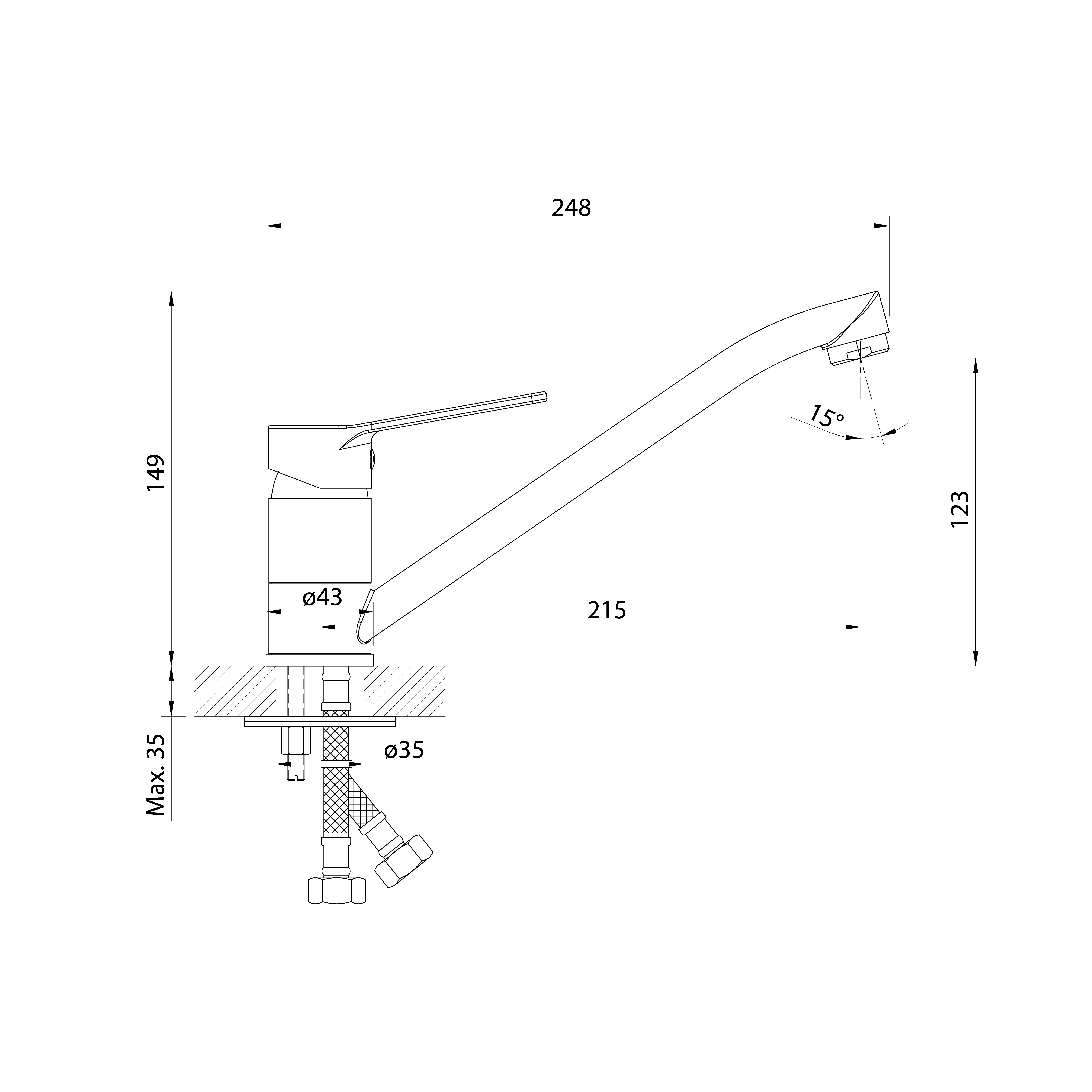 52139 AQUALINE 35 mosogató-csaptelep, mozgatható kifolyóval, króm