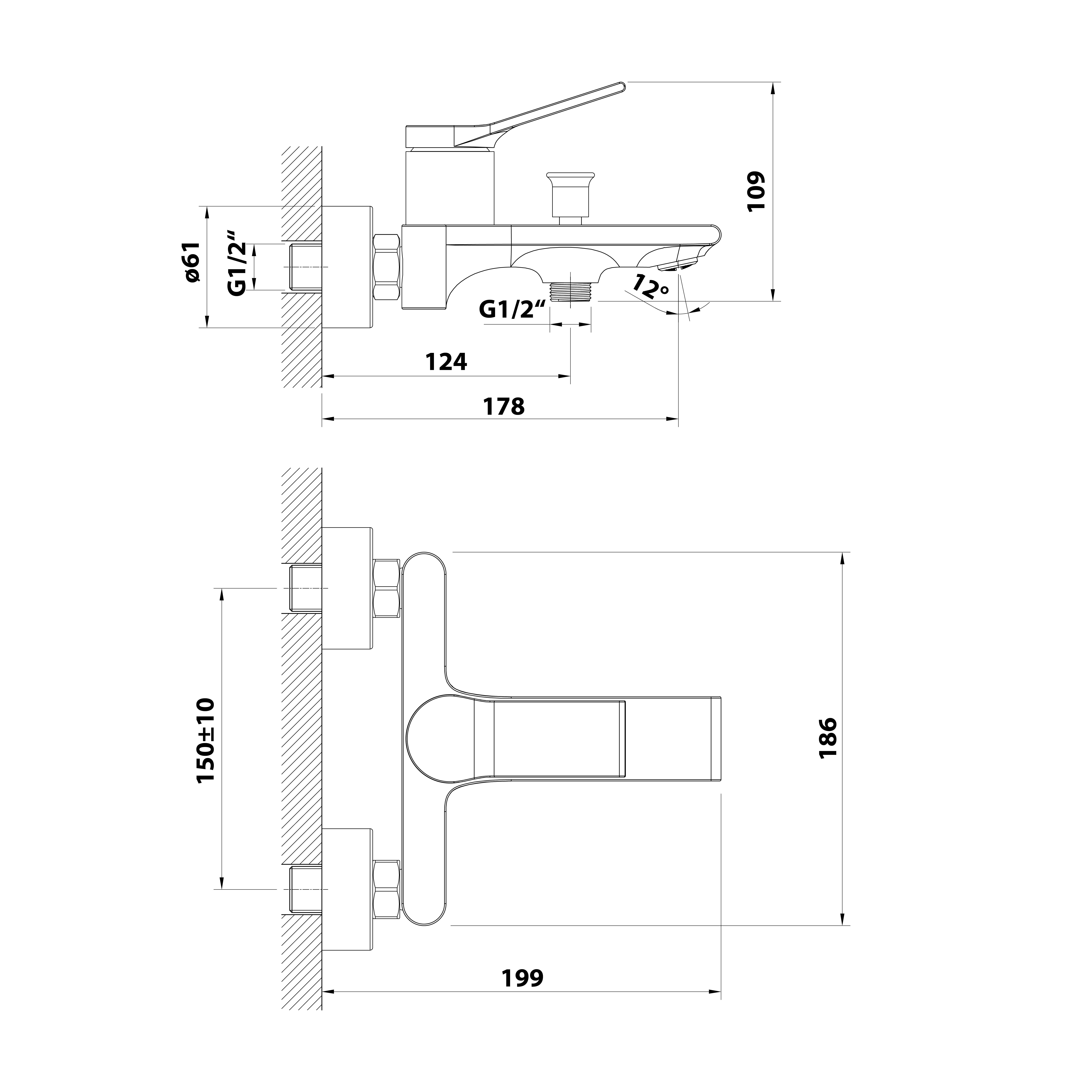 BC010 AQUALINE BOLERO fali kádtöltő csaptelep zuhanyváltóval, króm