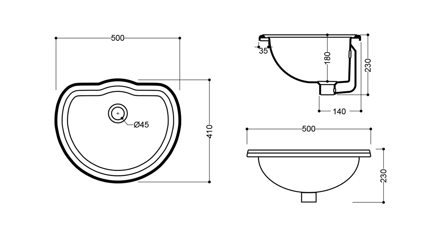 103001 KERASAN RETRO Beépíthető kerámiamosdó, 62x45,5cm